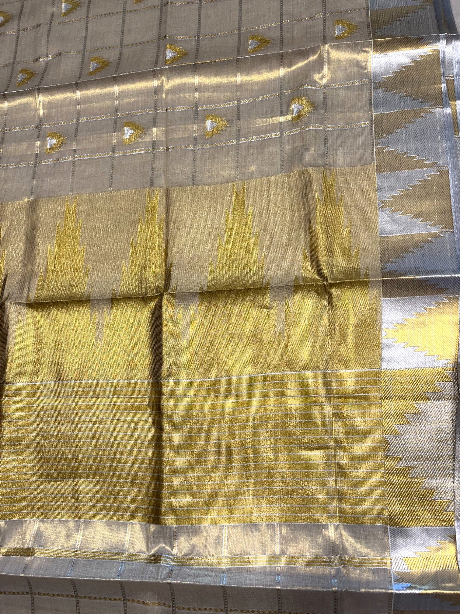 Southloom Kerala Tissue Kasavu Check Saree with Temple Border