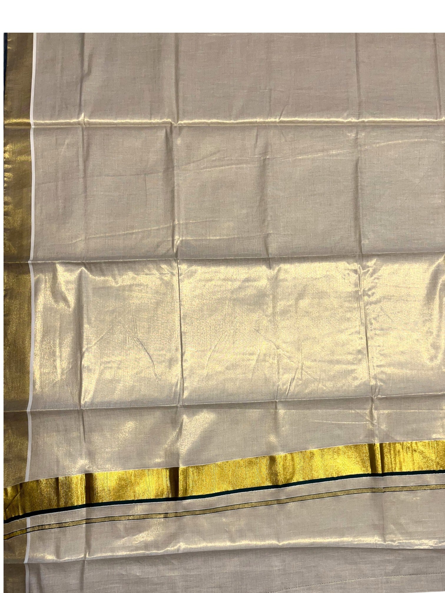 Southloom Kerala Tissue Kasavu Plain Saree With Green Border