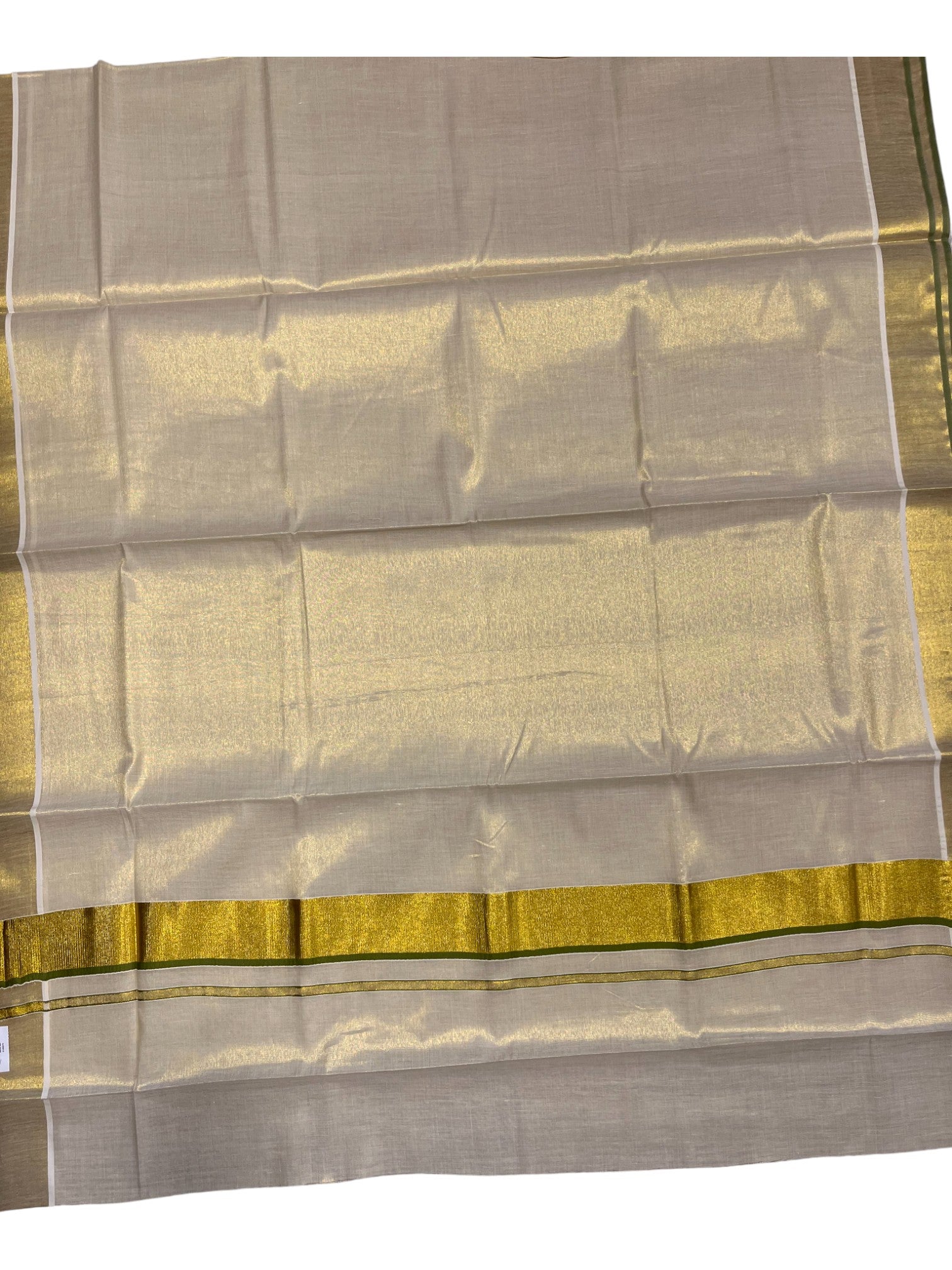 Southloom Kerala Tissue Kasavu Plain Saree With Green Border