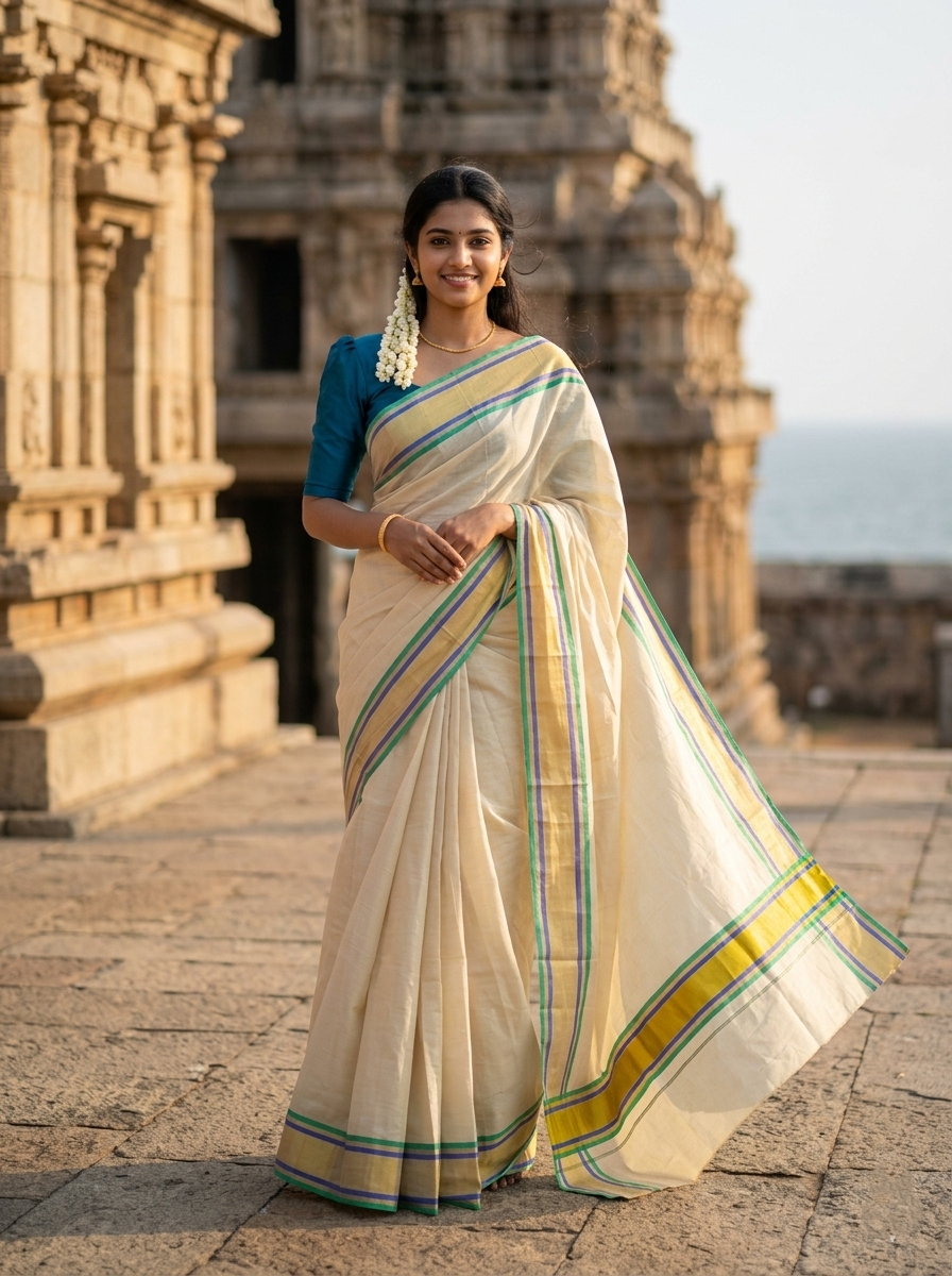 Southloom Kerala Tissue Kasavu Saree