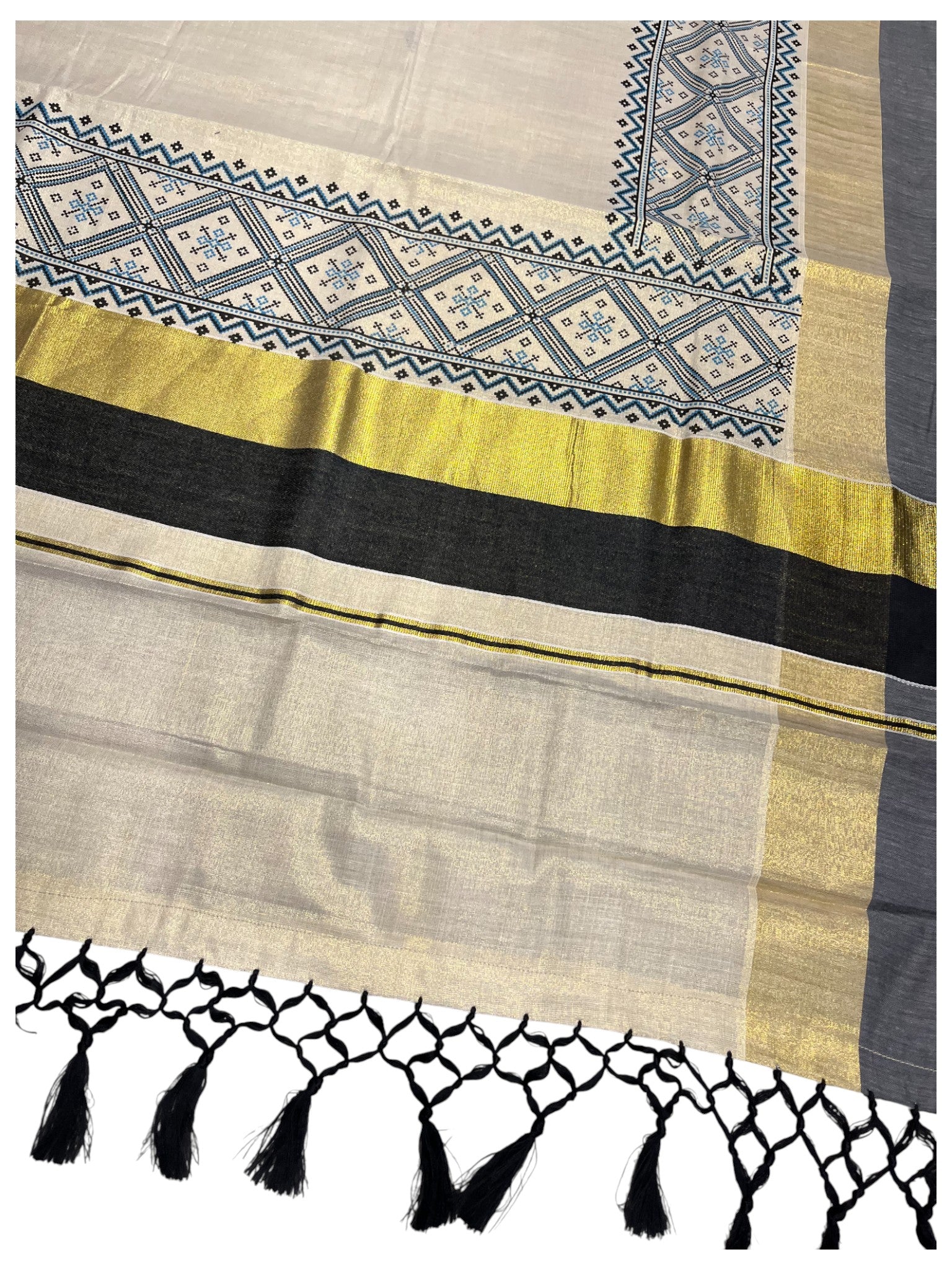 Southloom Kerala Tissue Kasavu Saree Black Hand Printed