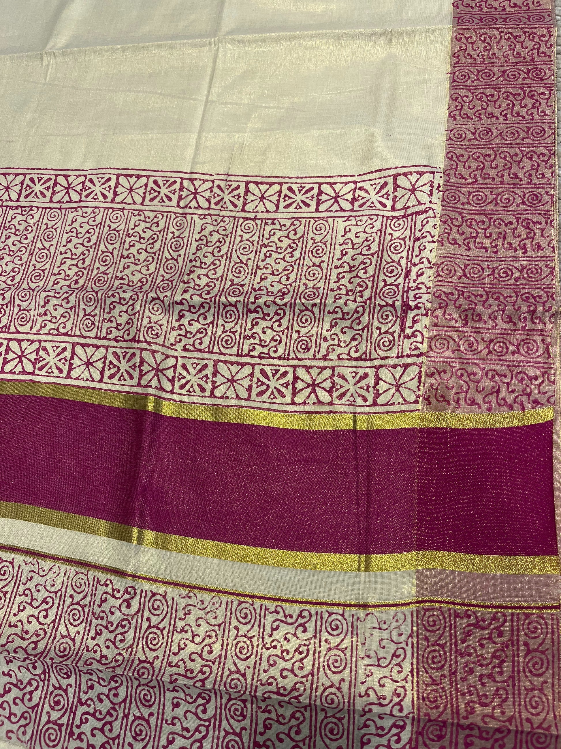 Southloom Kerala Tissue Kasavu Saree With Magenta Border