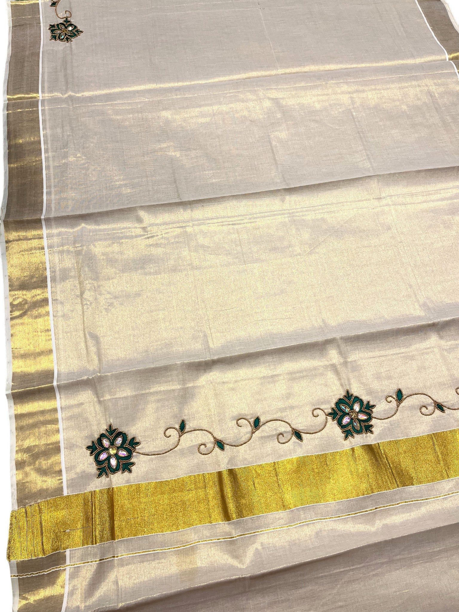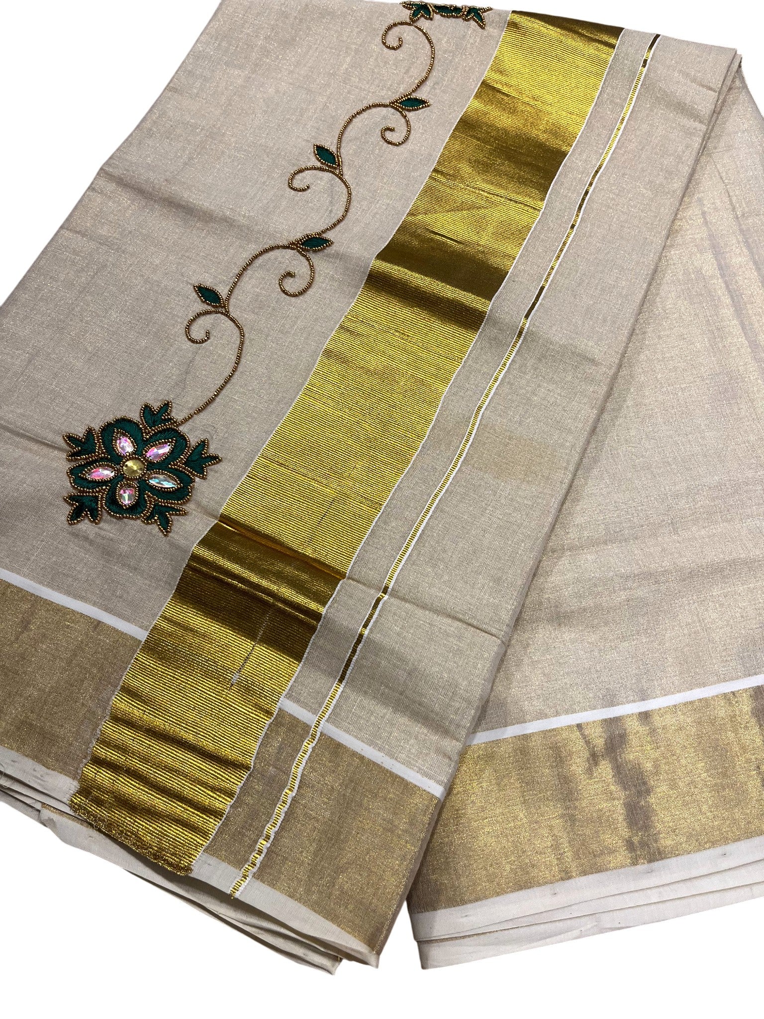 Southloom Kerala Tissue Kasavu Saree with Embroidery and Sequins Work