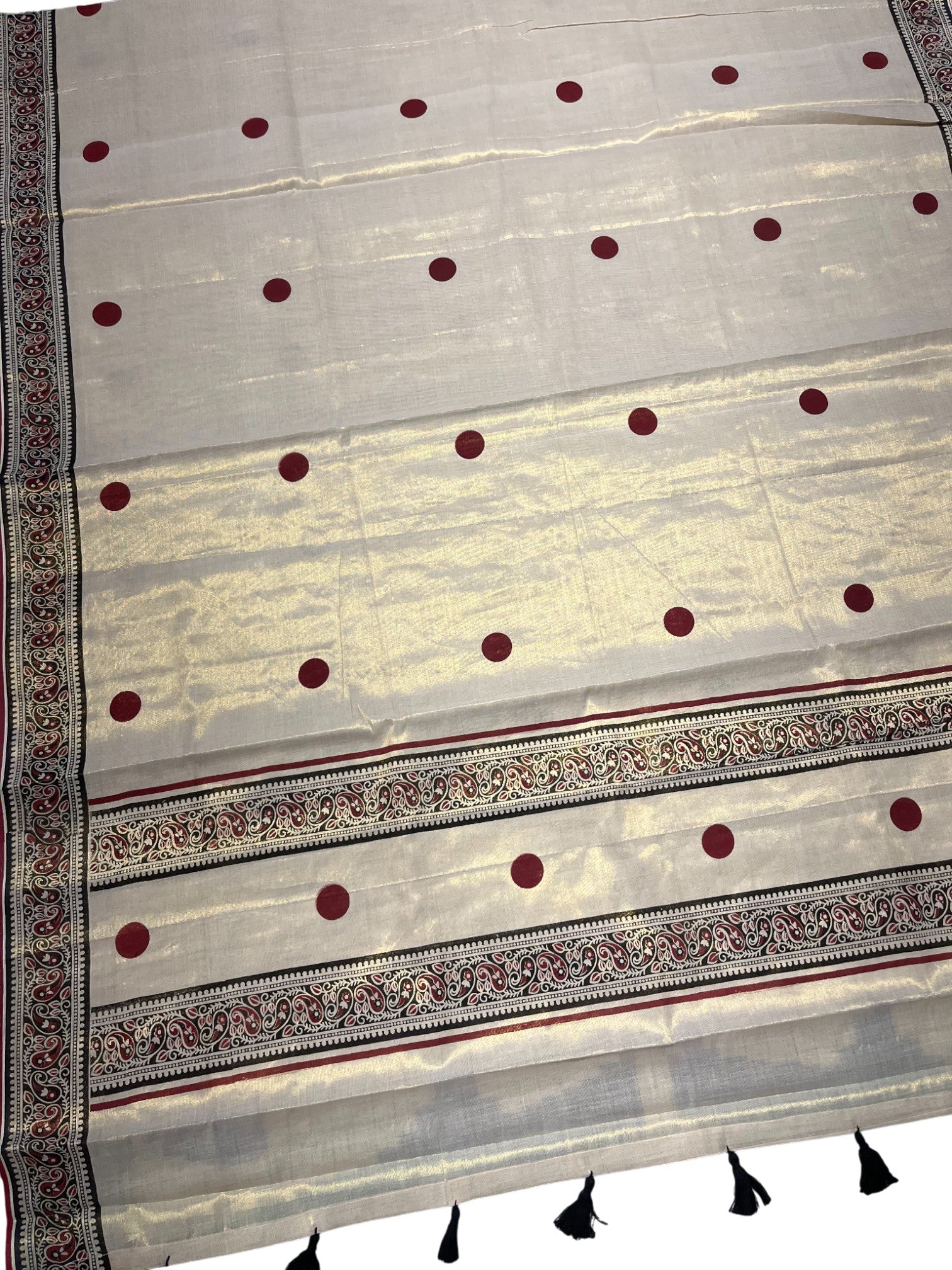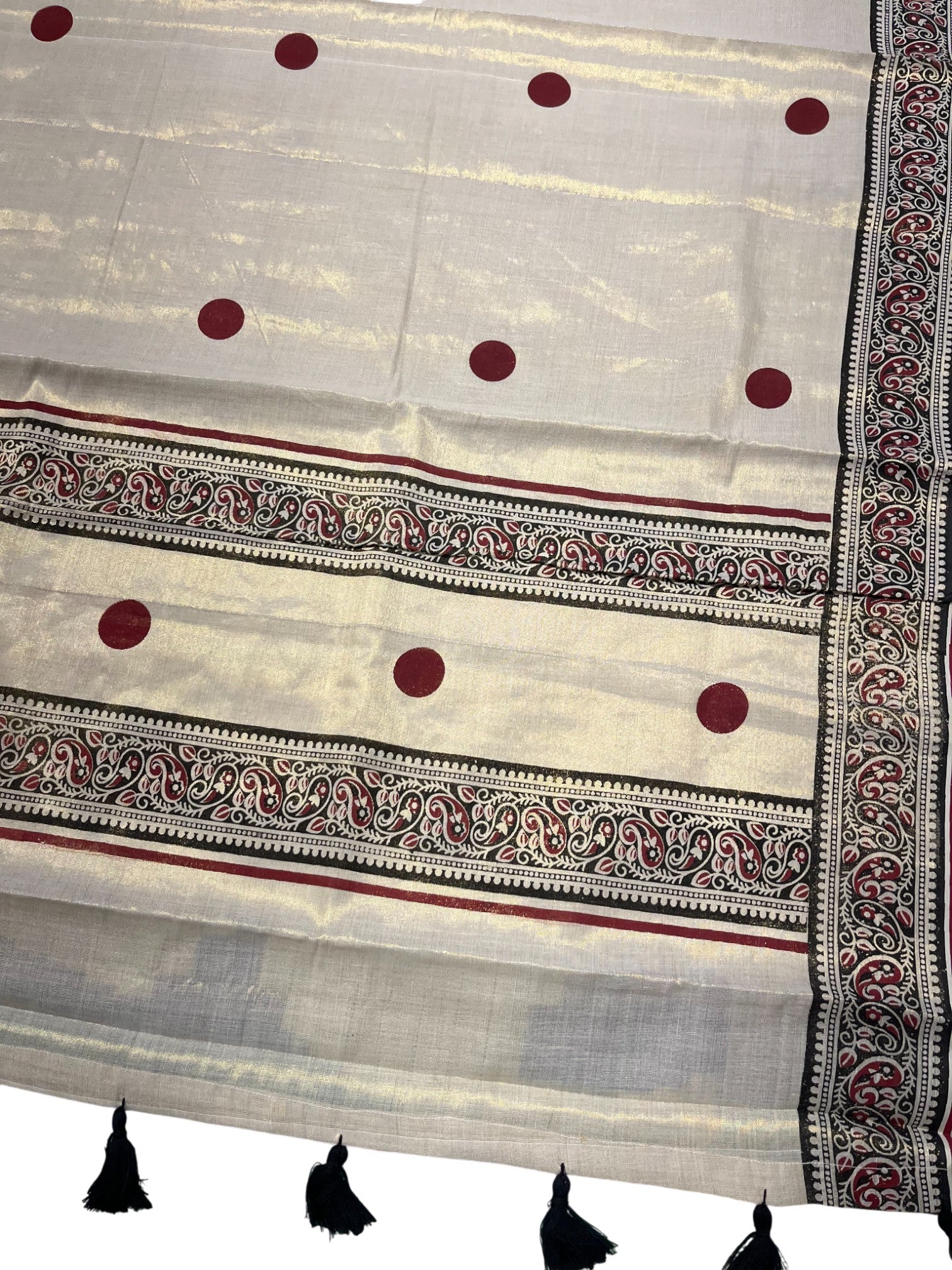 Southloom Kerala Tissue Kasavu Saree With Maroon Polka Dots on Body