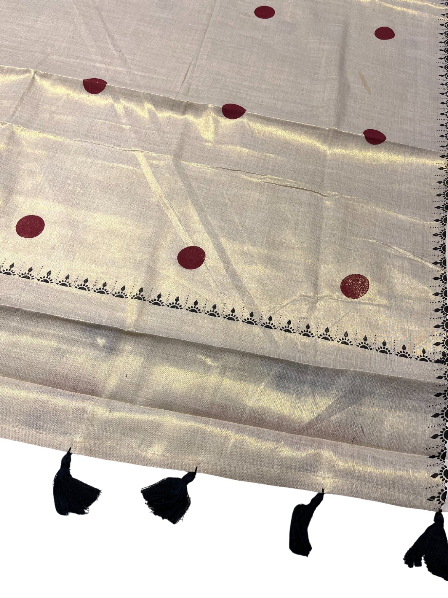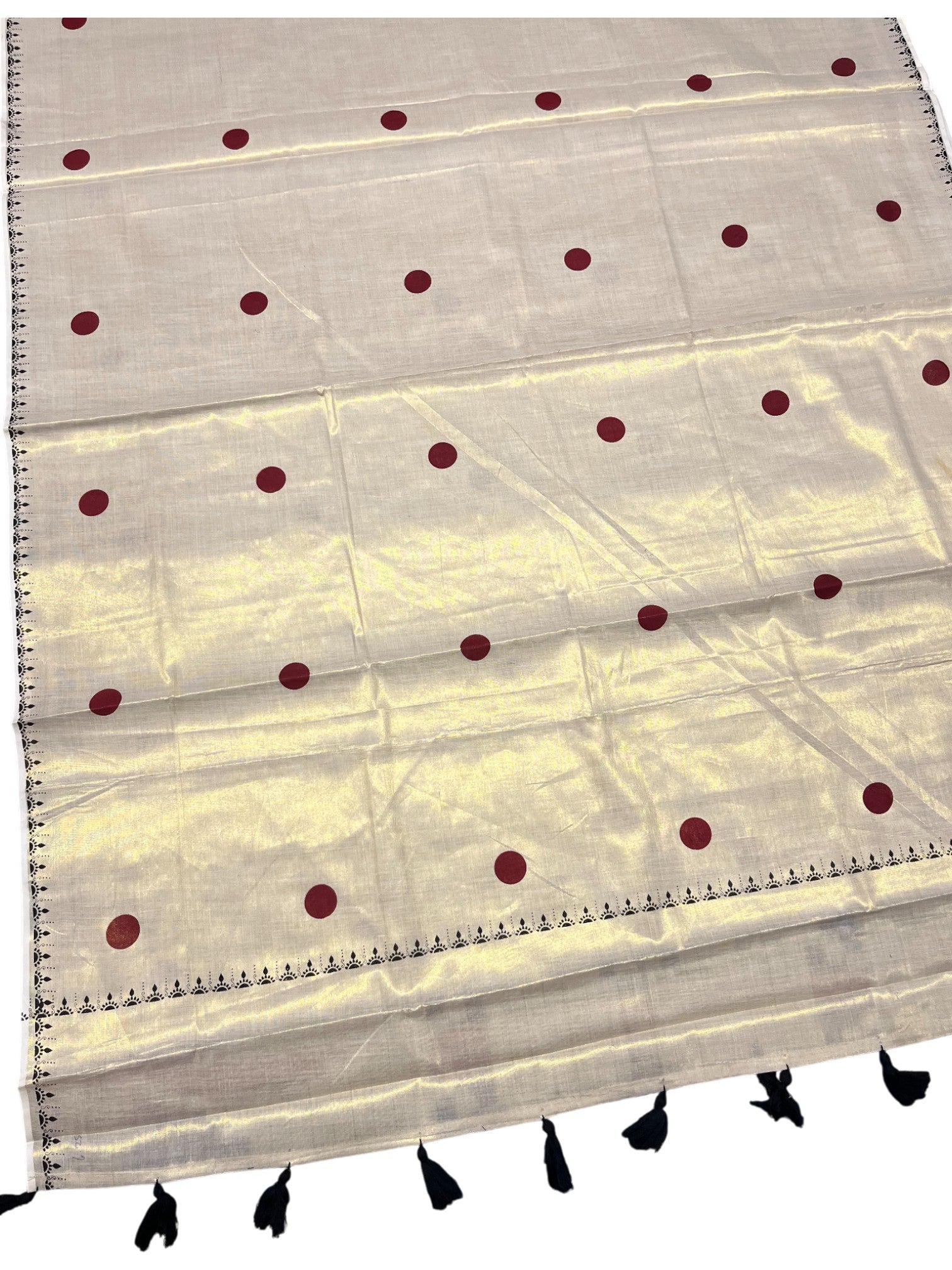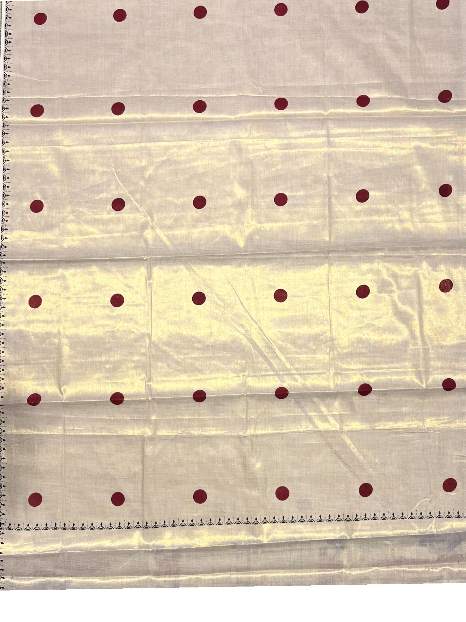 Southloom Kerala Tissue Kasavu Saree With Maroon Polka Dots on Body
