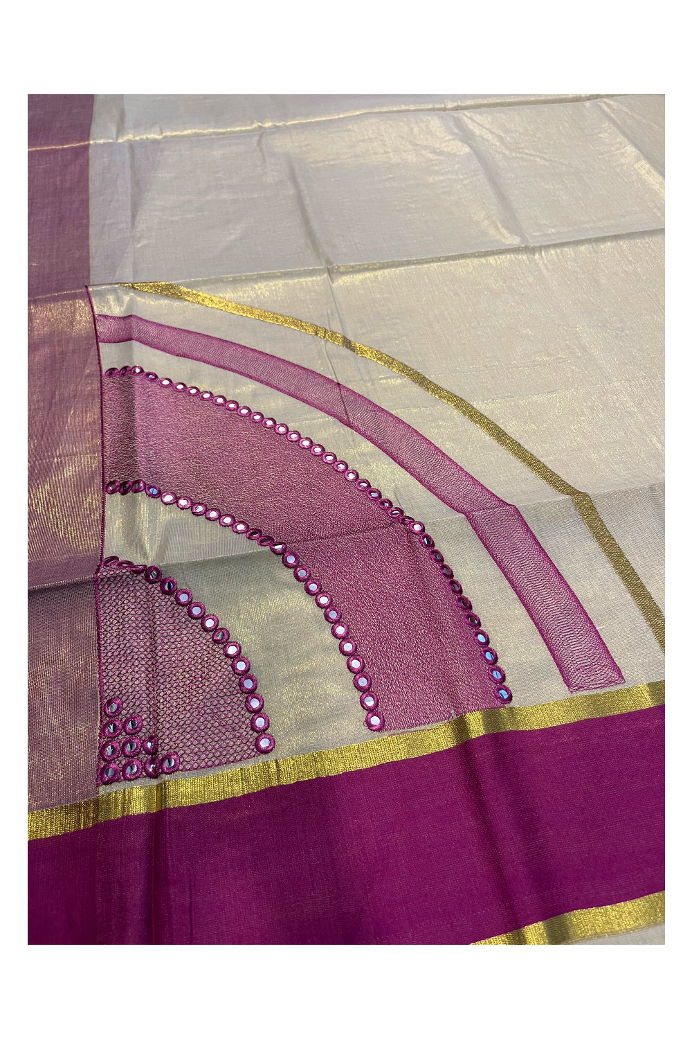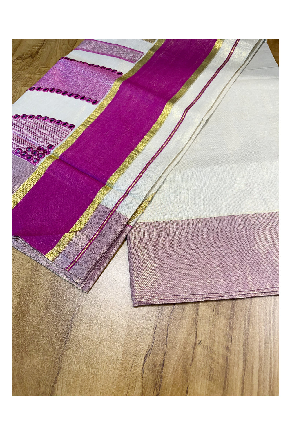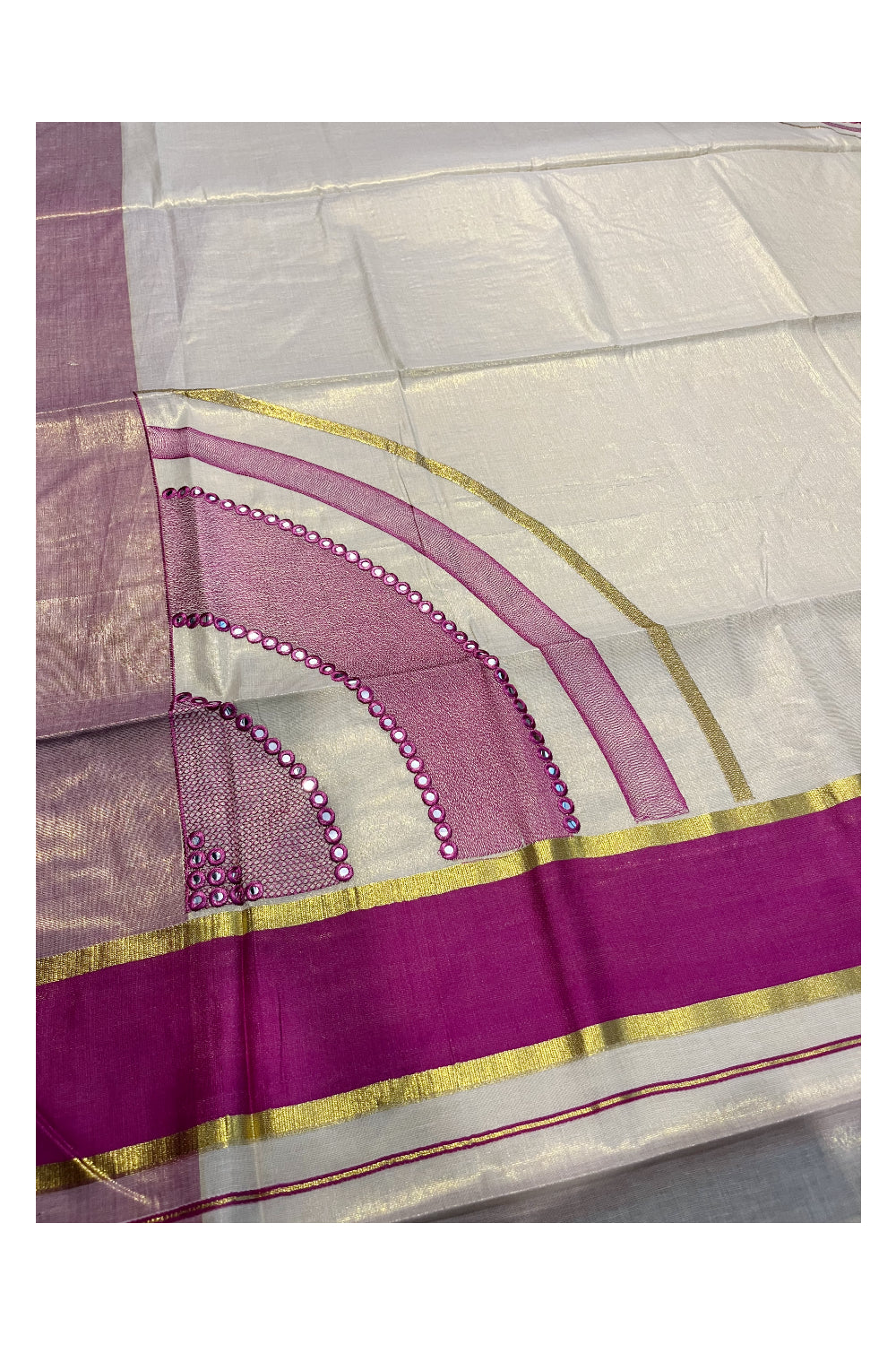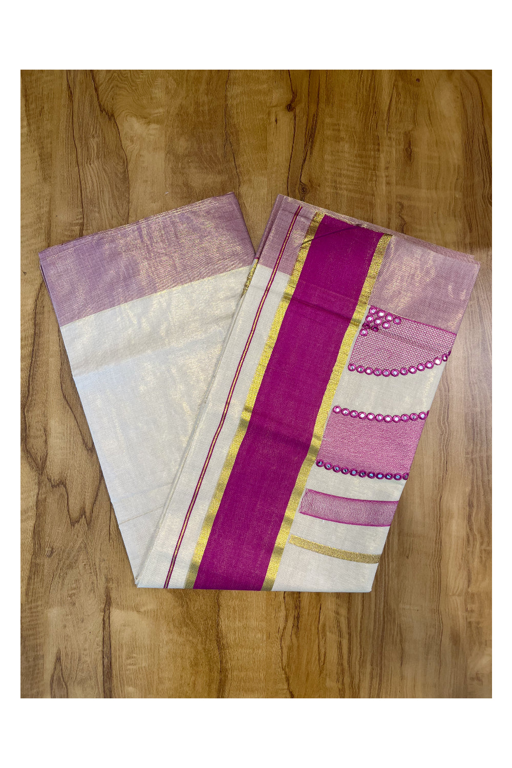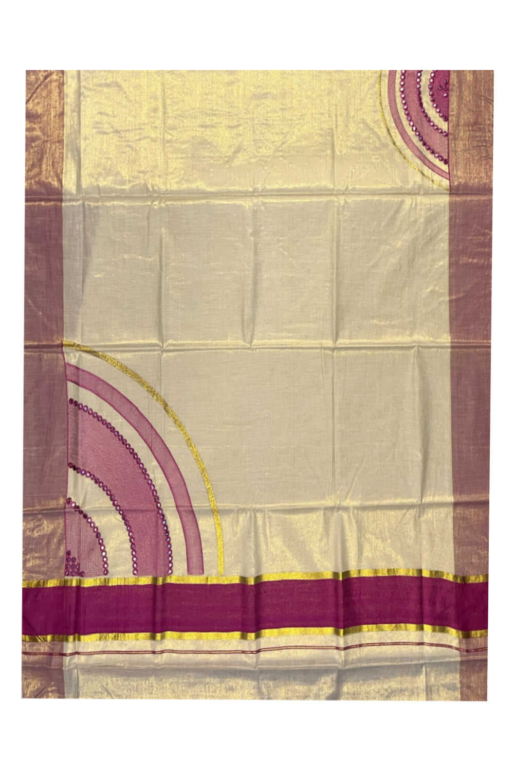 Southloom Kerala Tissue Kasavu Saree with Pink Mirror Work