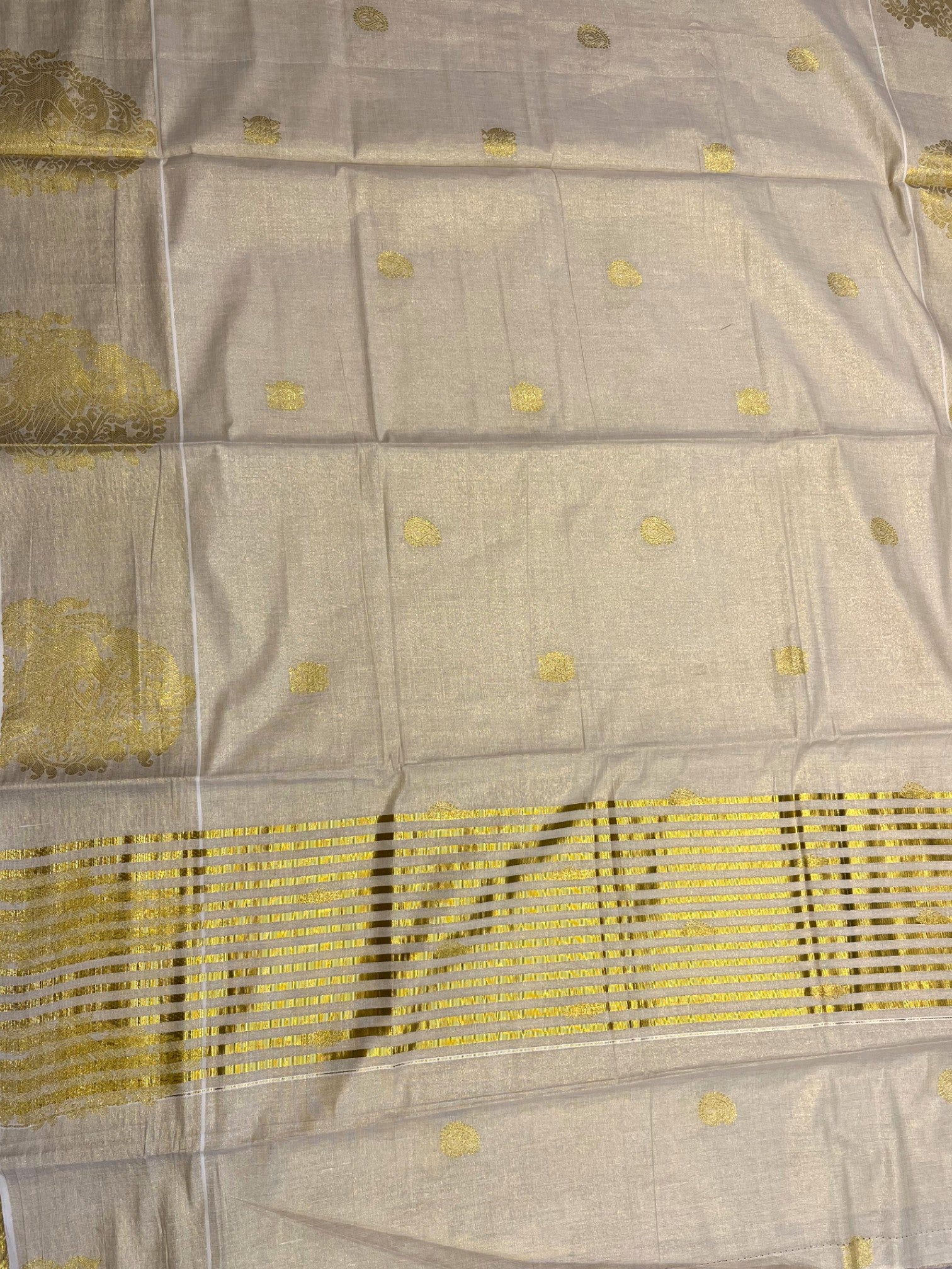 Southloom Kerala Tissue Kasavu Saree with Woven Butta Works Across Body