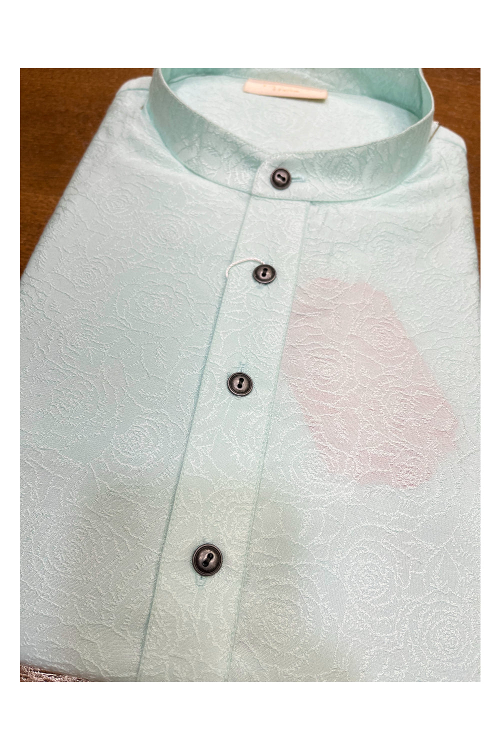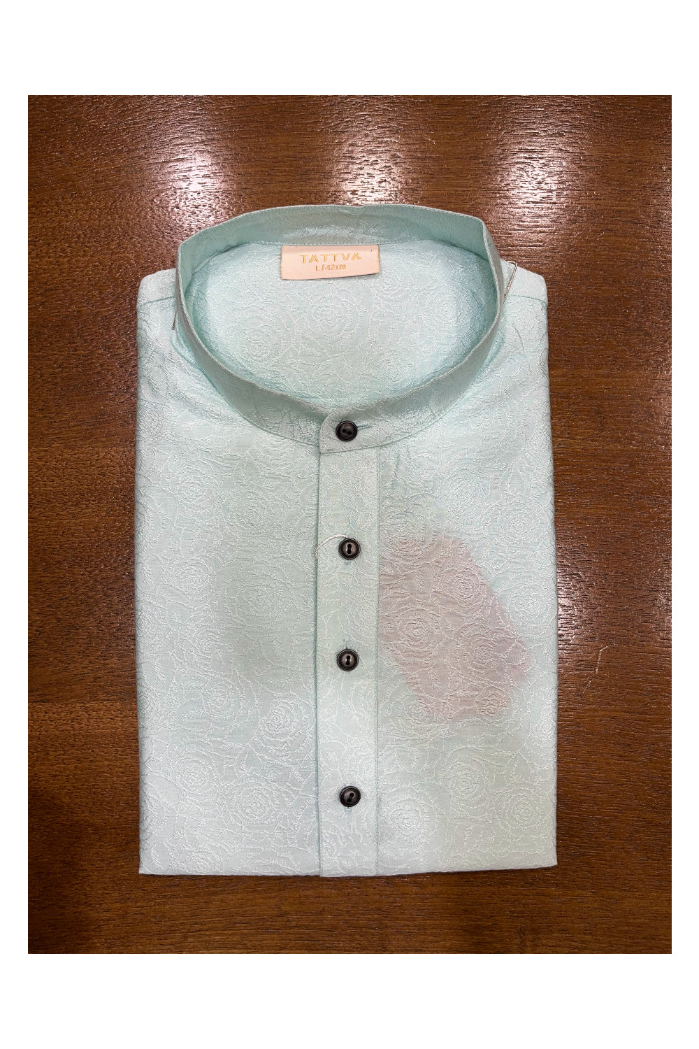 Southloom Light Blue Embroidered Semi Silk Short Kurta for Men