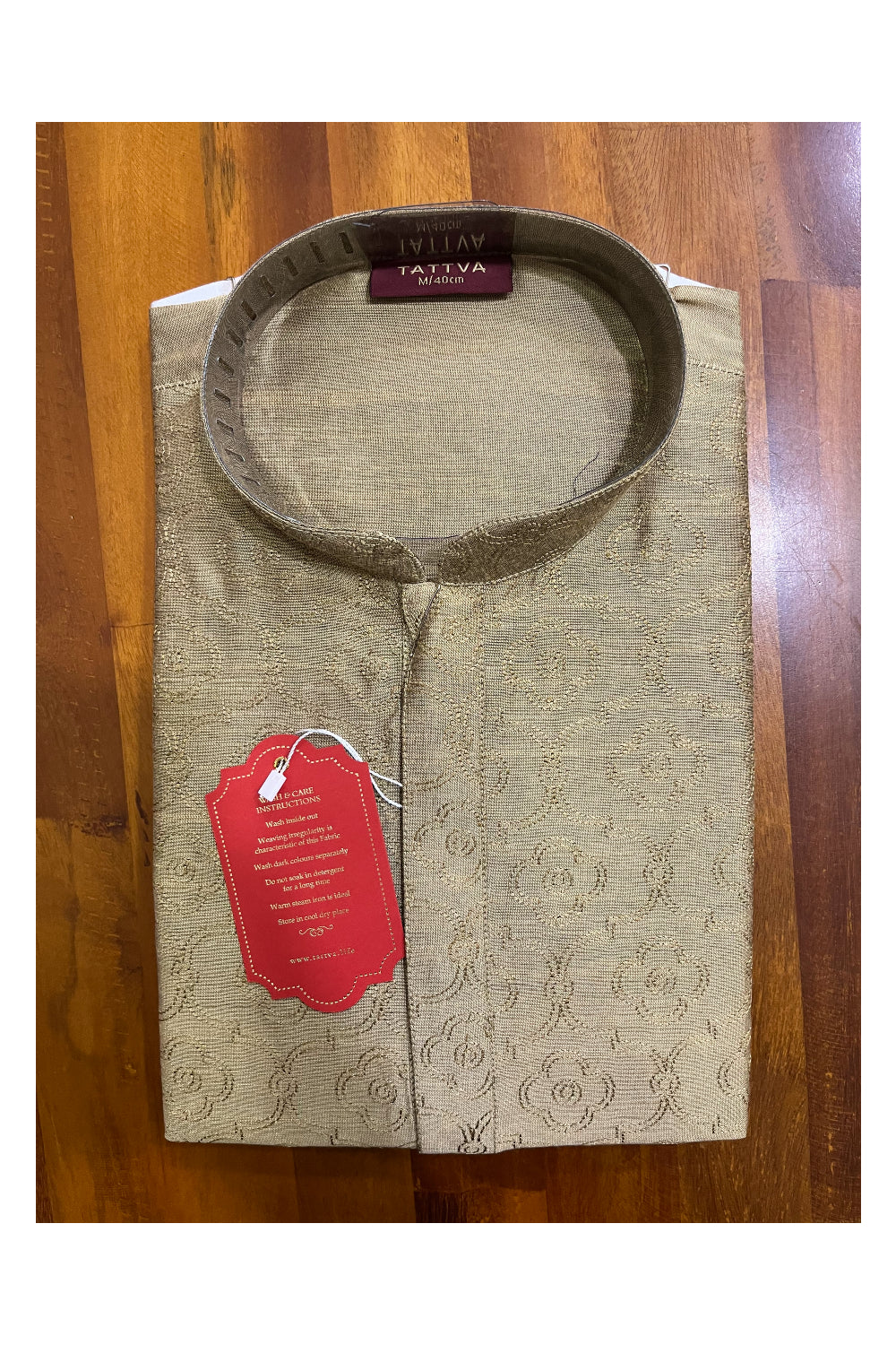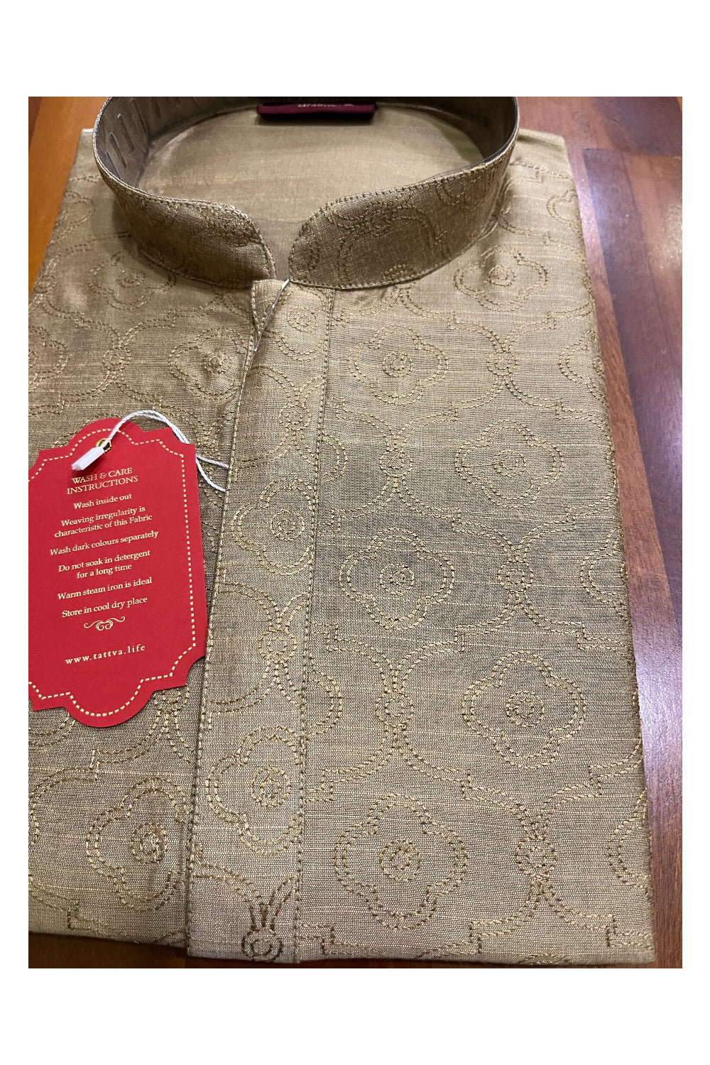 Southloom Light Brown Embroidered Semi Silk Short Kurta for Men