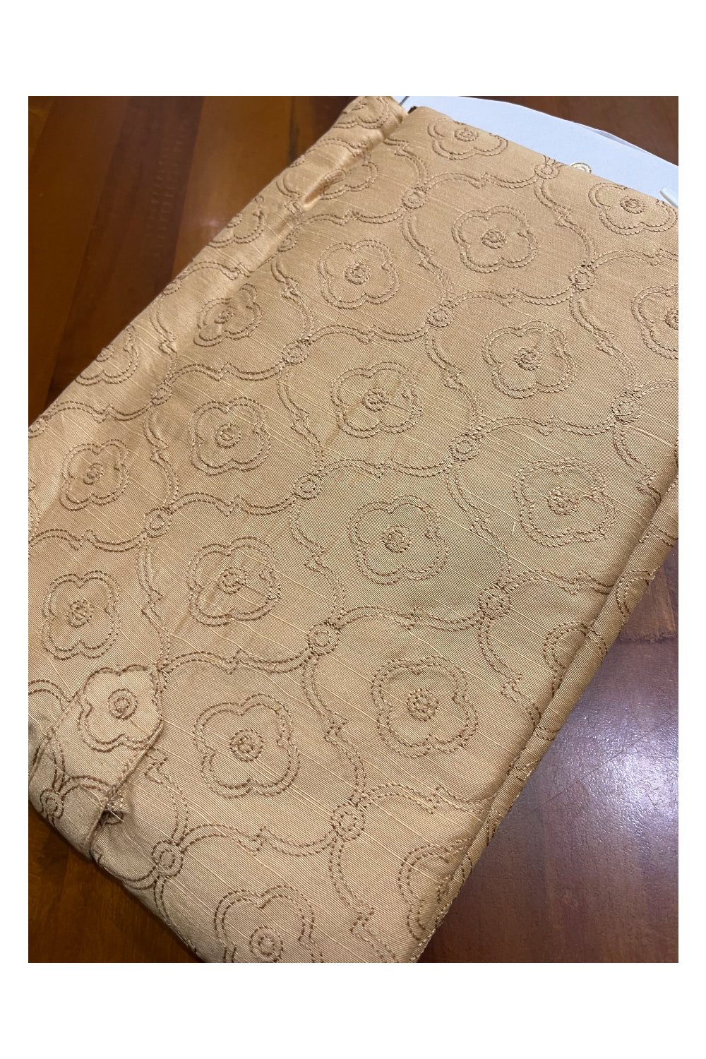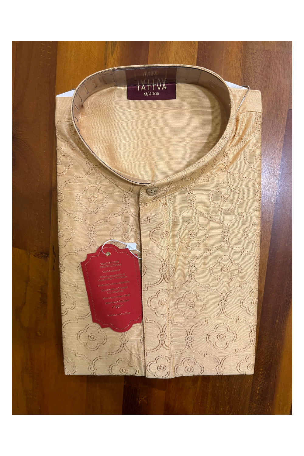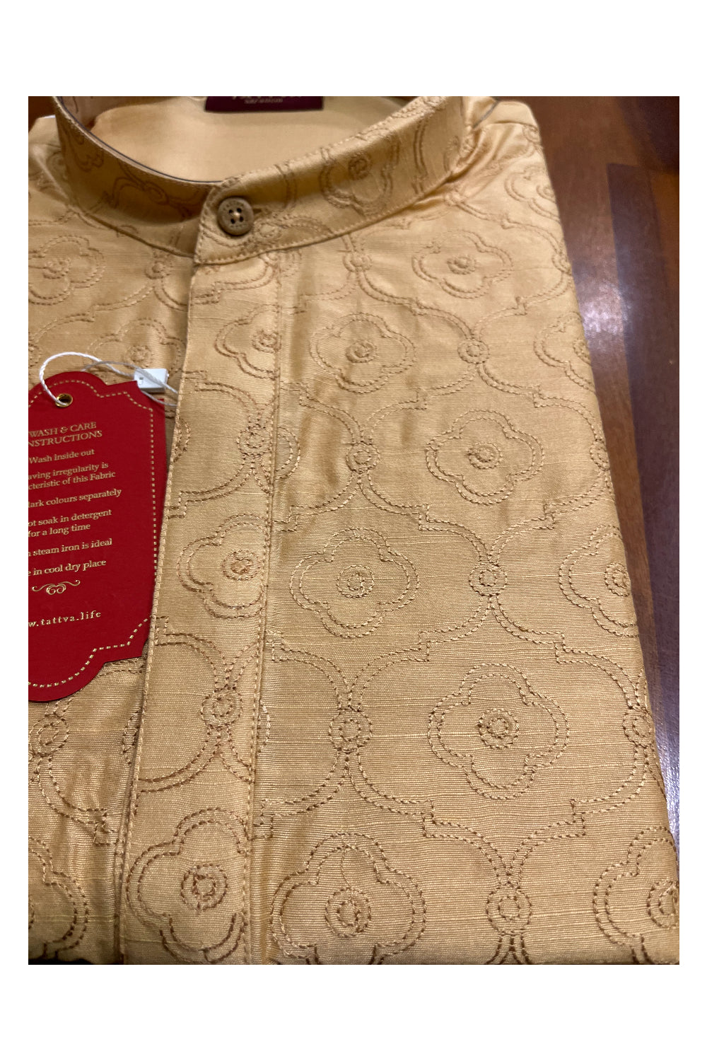 Southloom Light Brown Embroidered Semi Silk Short Kurta for Men