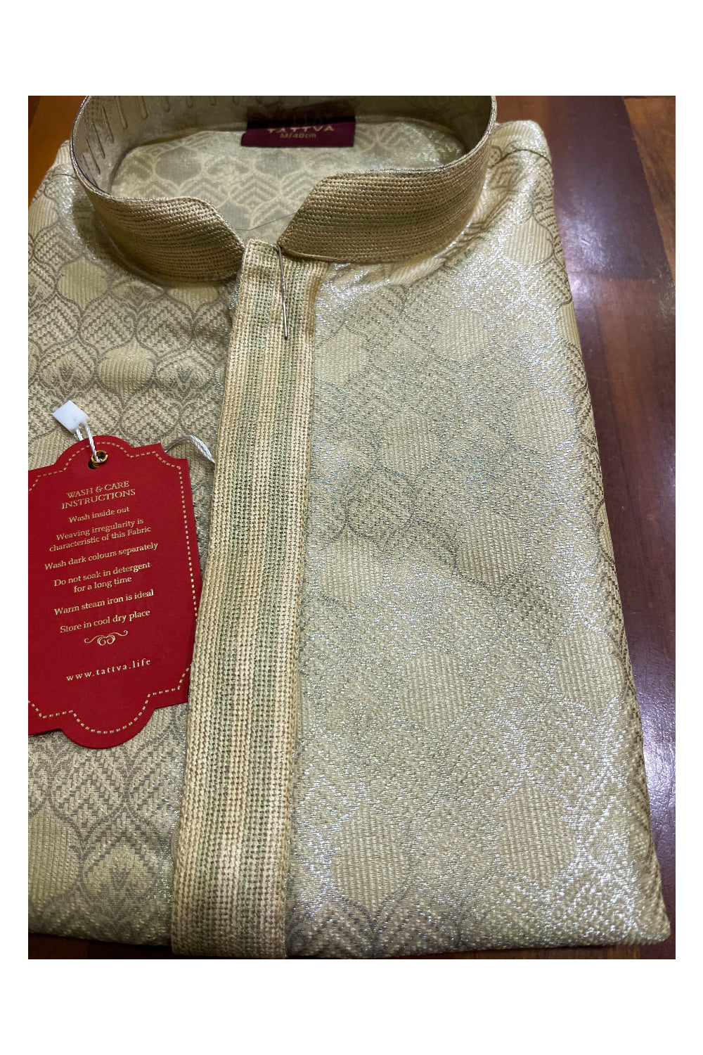 Southloom Light Brown Woven Designs Semi Silk Short Kurta for Men