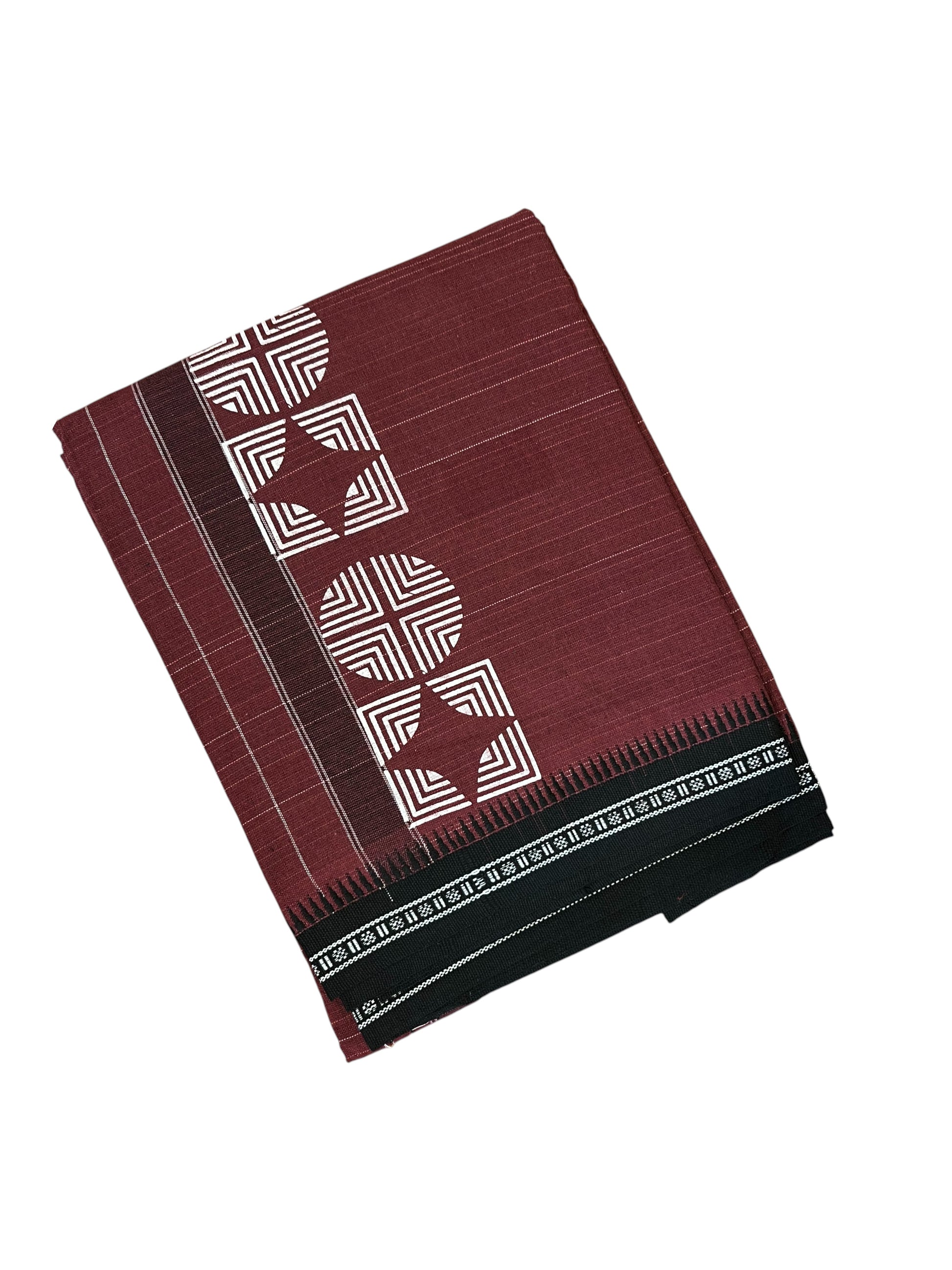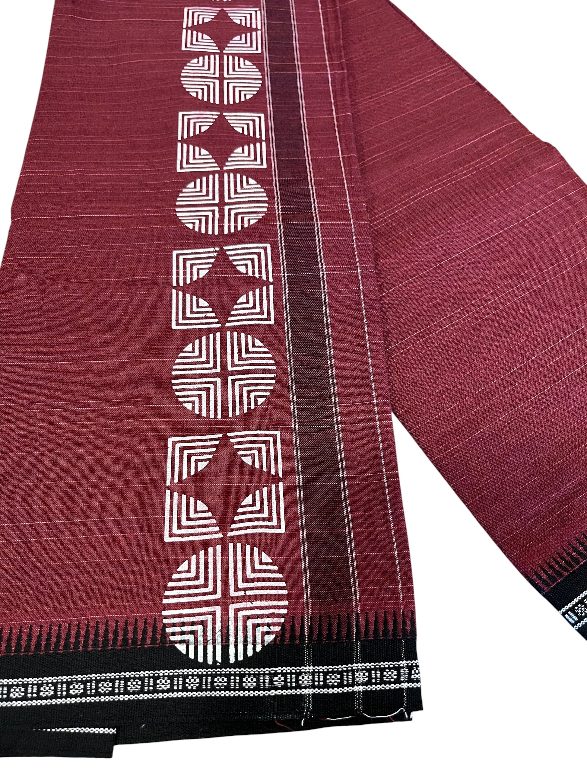 Southloom Maroon Printed Single Mundu / Otta Mundu / Lungi (South Indian Kerala Dhoti)