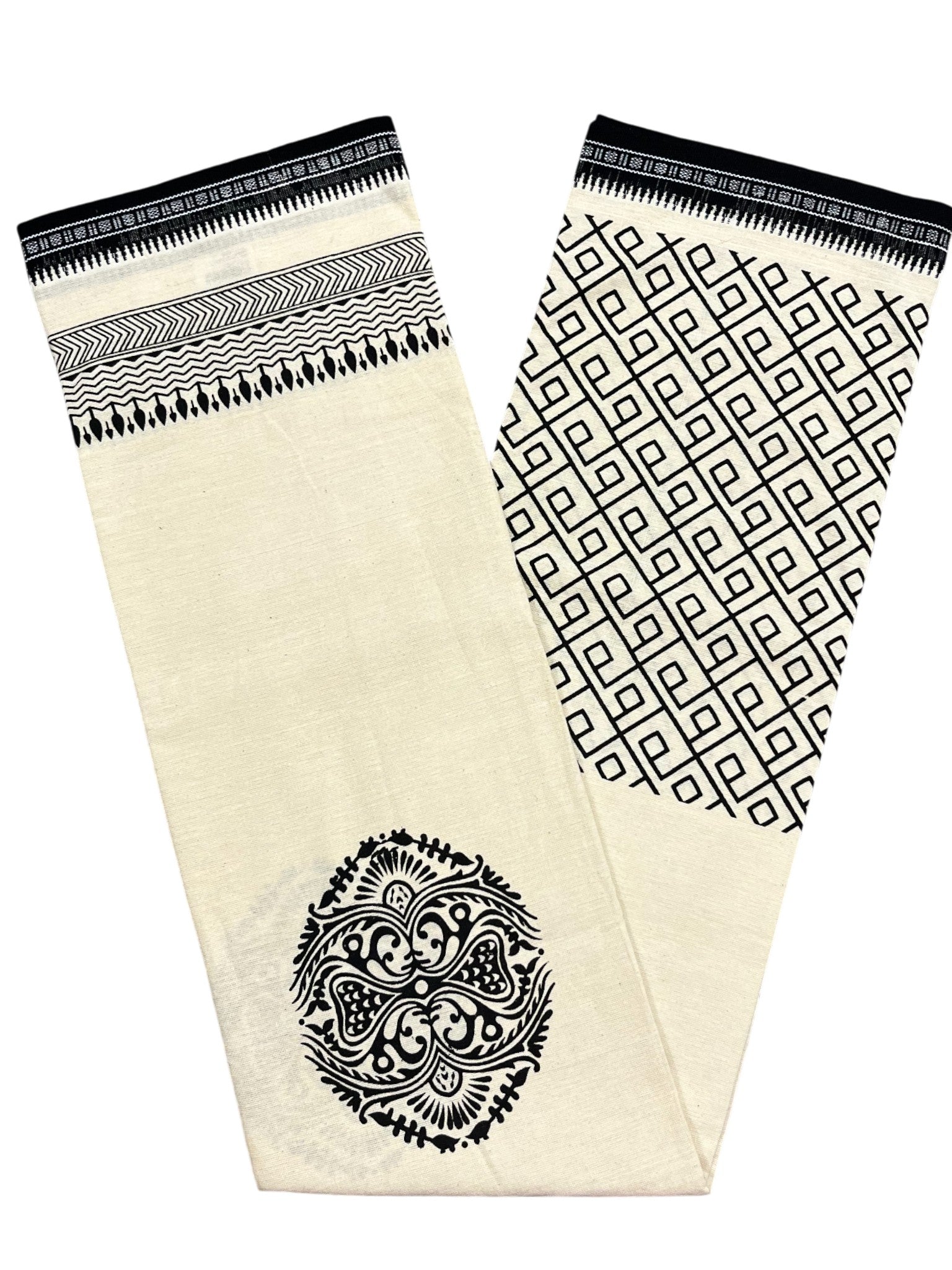 Southloom Off White And Black Printed Single Mundu / Otta Mundu / Lungi (South Indian Kerala Dhoti)