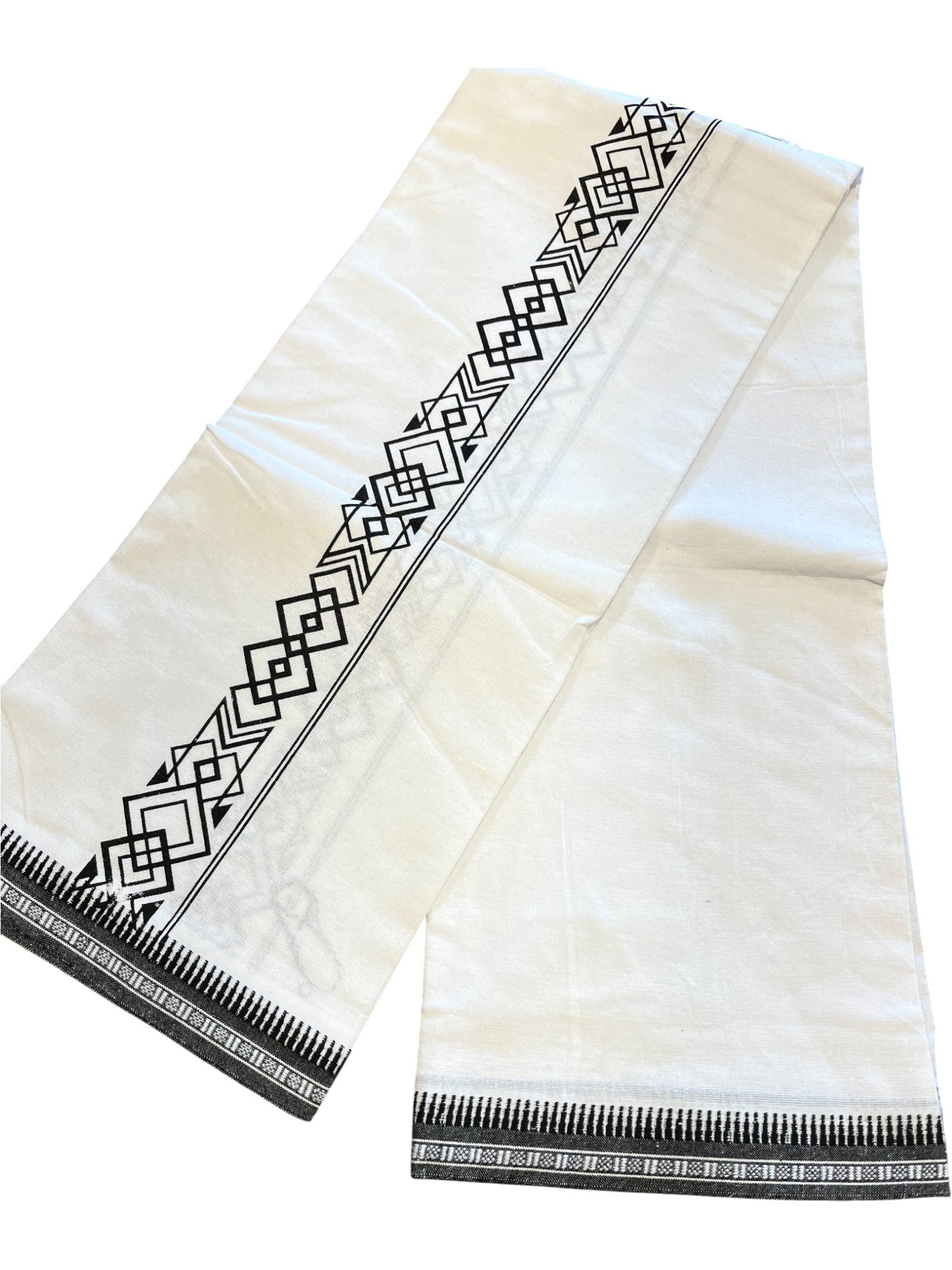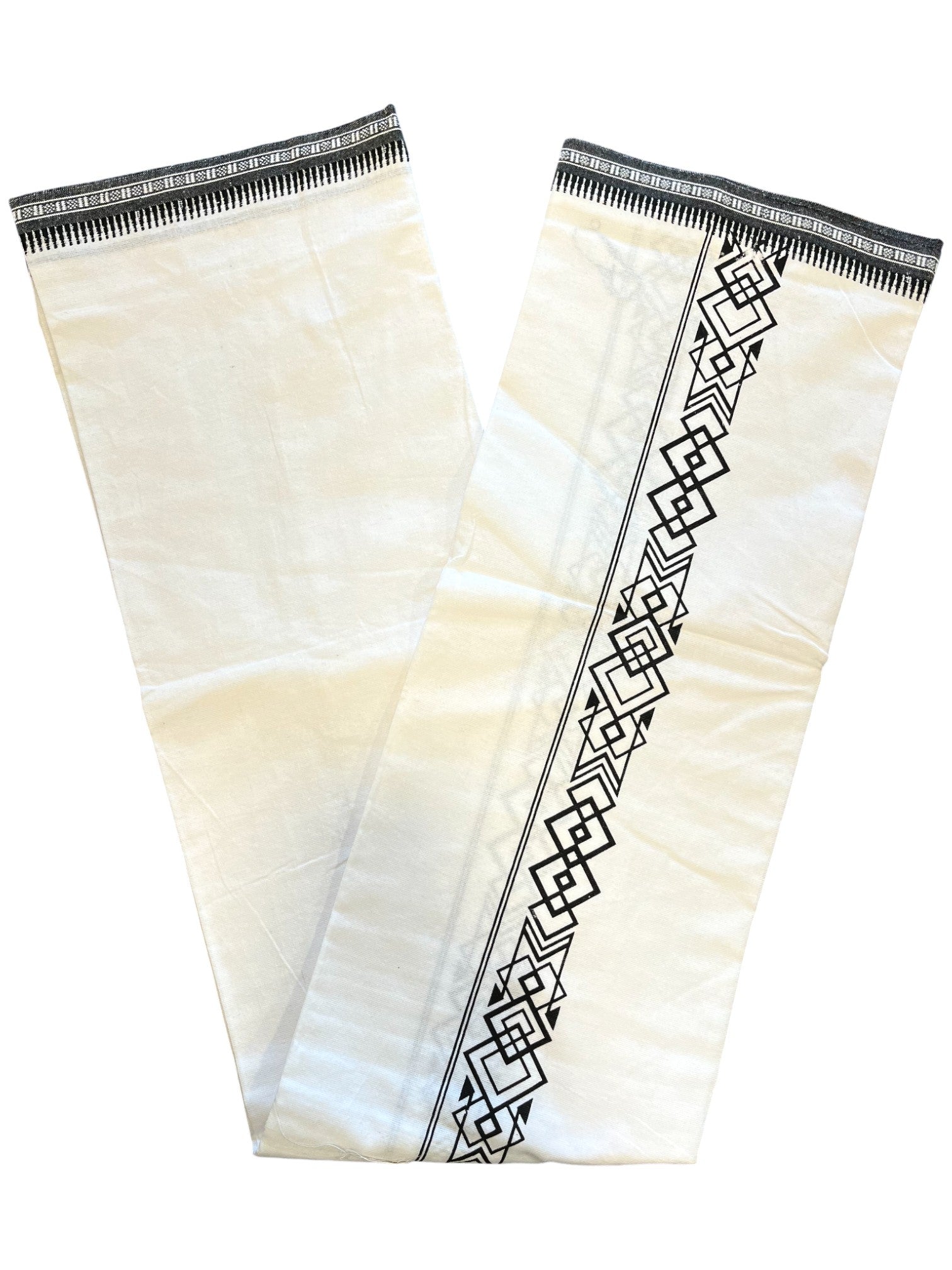 Southloom Off White And Black Printed Single Mundu / Otta Mundu / Lungi (South Indian Kerala Dhoti)