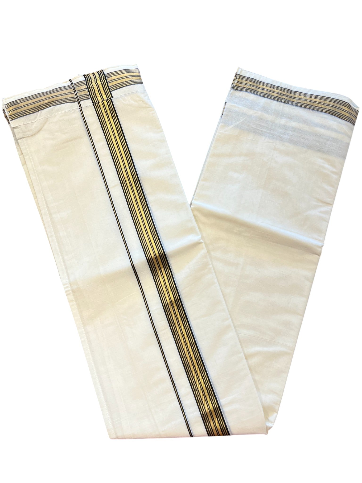 Southloom Off White Pure Cotton VELCRO Single Mundu with Gold Kasavu and Black Border (South Indian Kerala Dhoti)