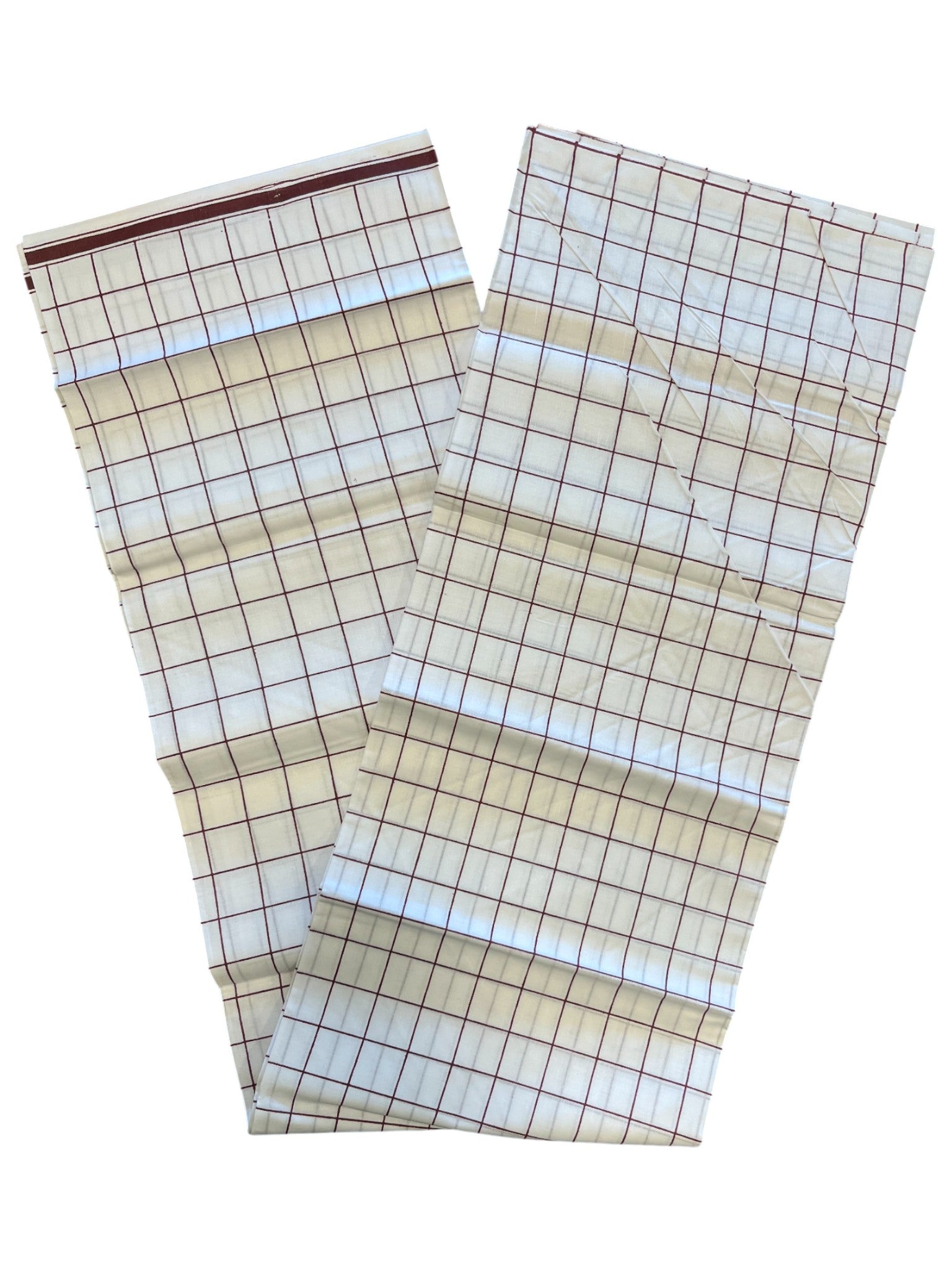 Southloom Off White Single Mundu With Check Design / Otta Mundu / Lungi (South Indian Kerala Dhoti)