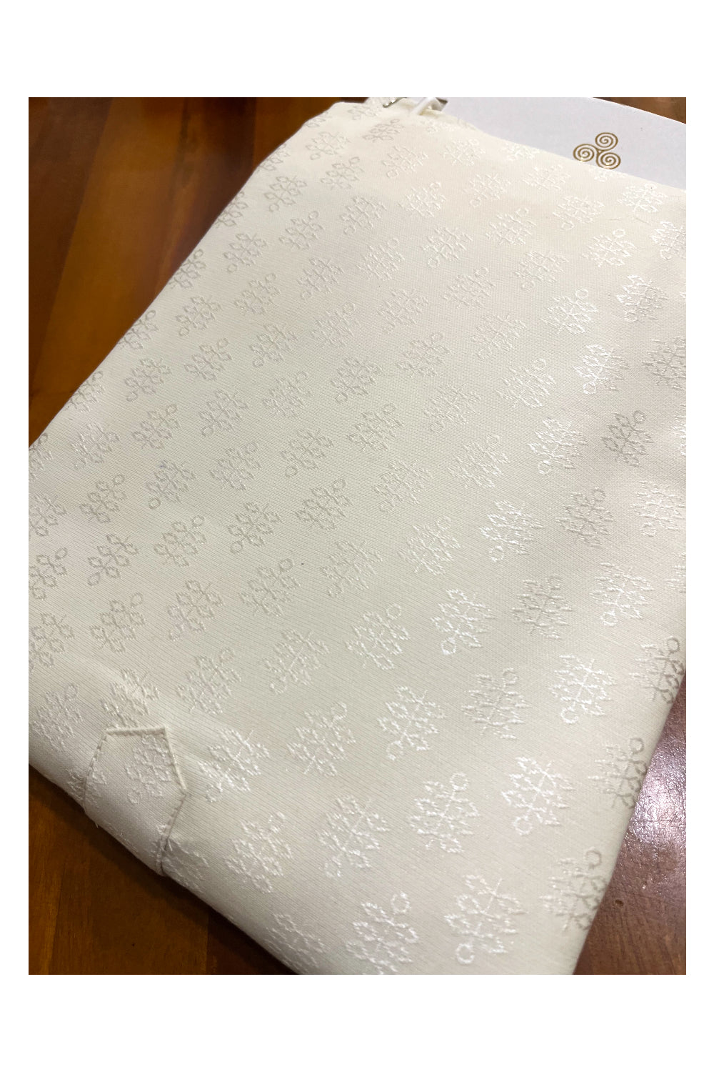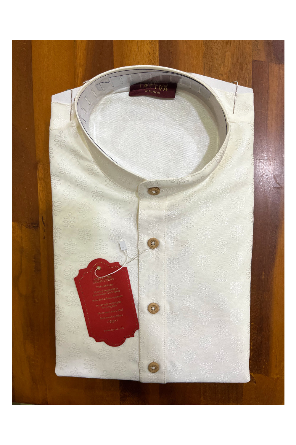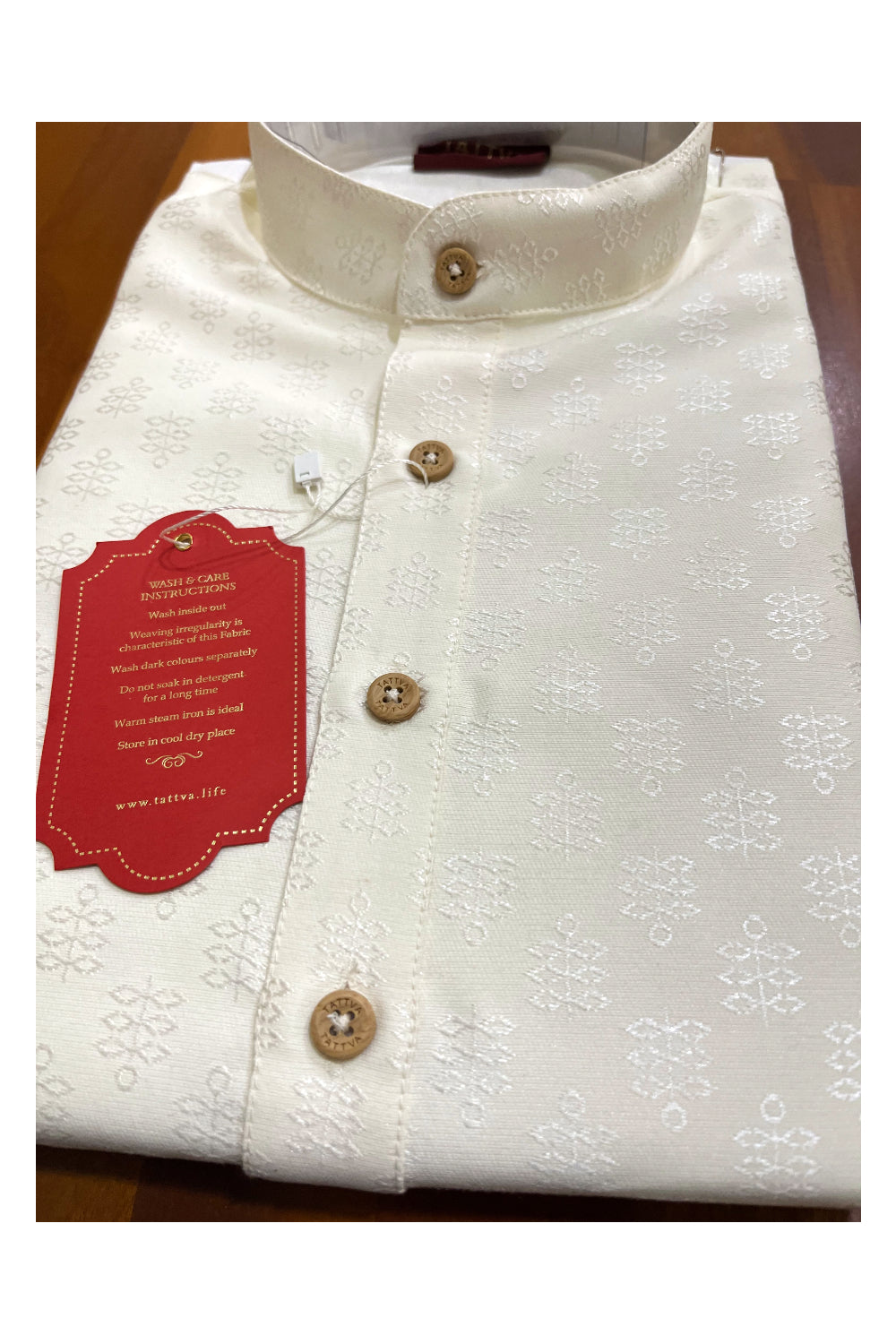 Southloom Off White Woven Designs Semi Silk Short Kurta for Men
