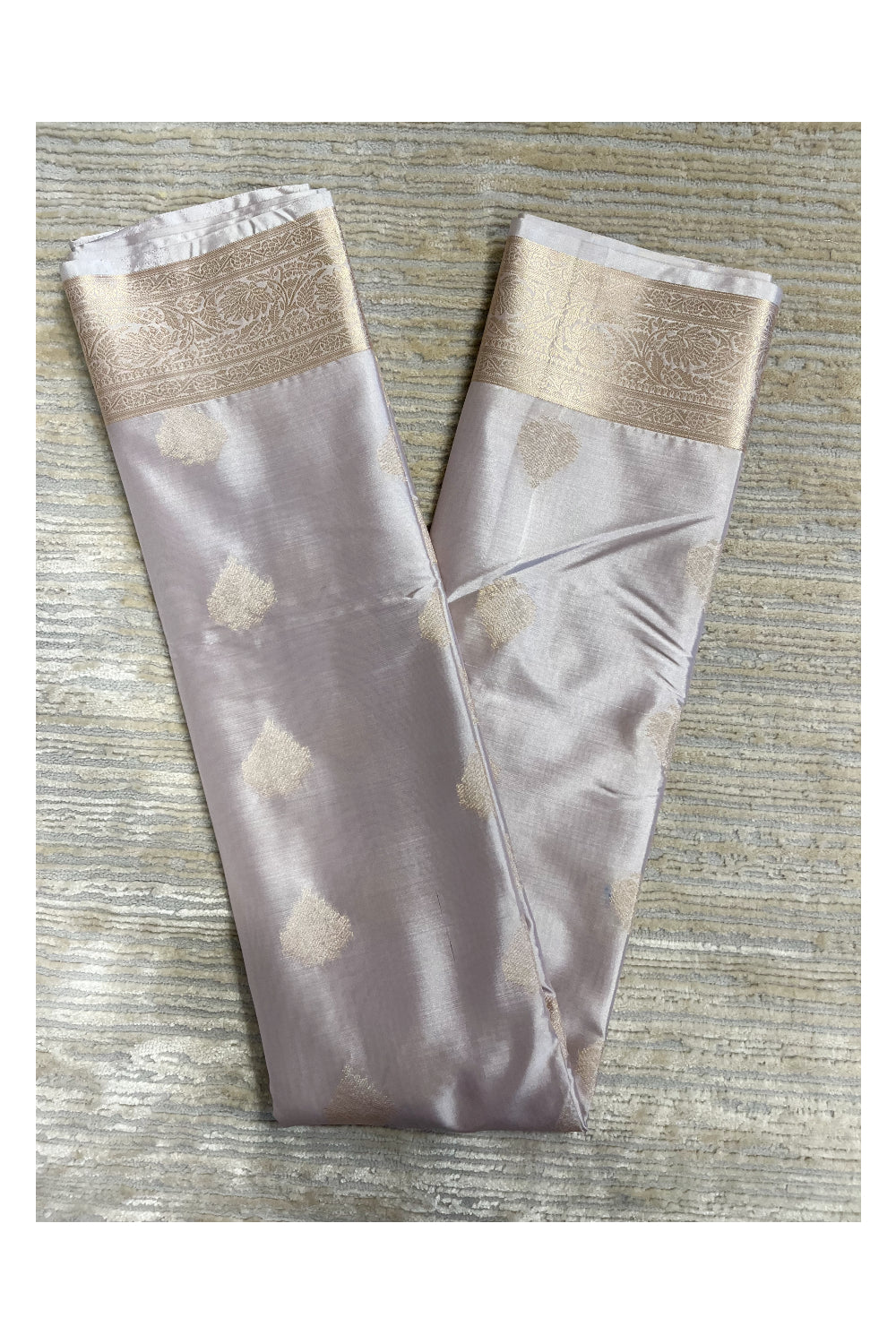 Southloom Semi Silk Saree In Beige With Woven Zari Borders And Butta Work Across Body