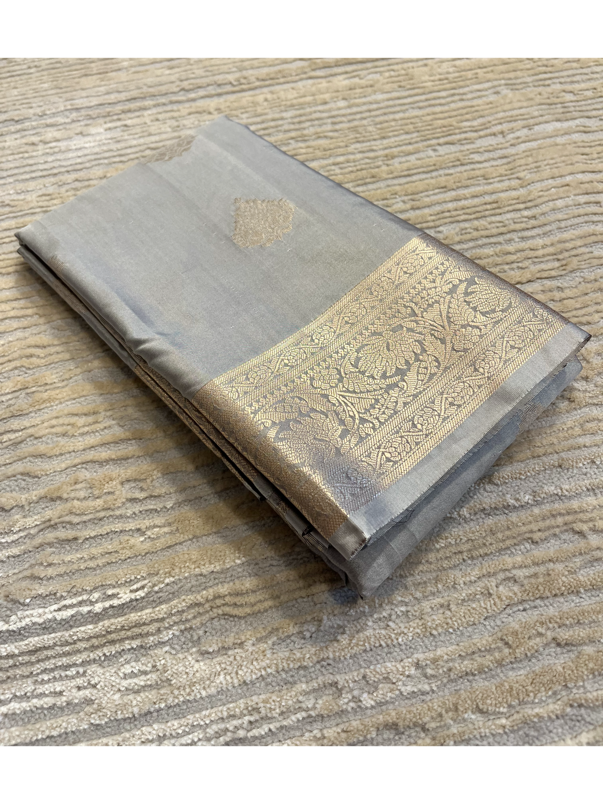 Southloom Pastel Shade Silk Saree In Gray With Woven Zari Borders And Butta Work Across Body