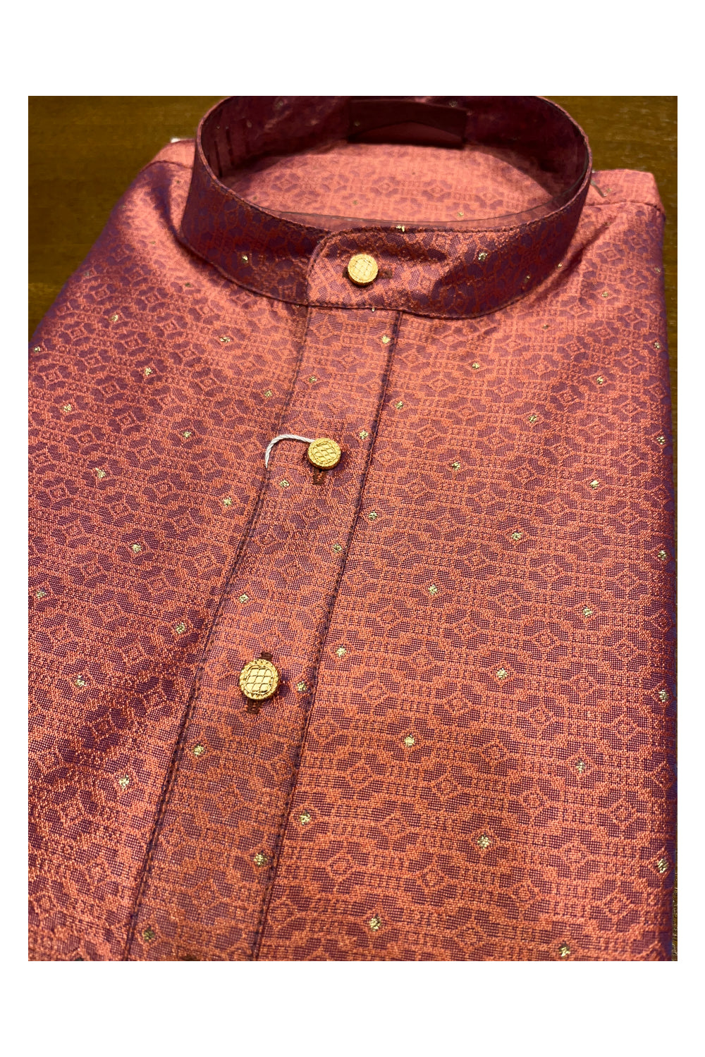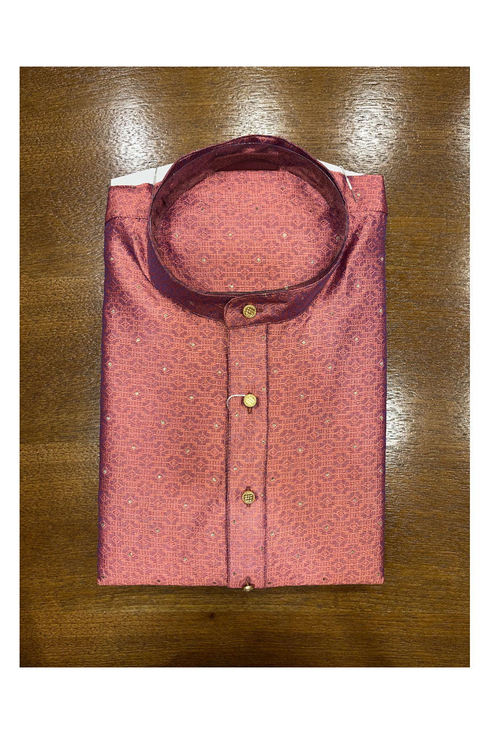 Southloom Pink Woven Patterns Semi Silk Short Kurta for Men