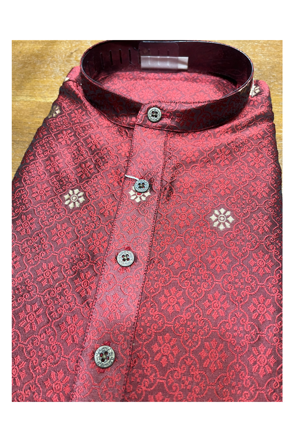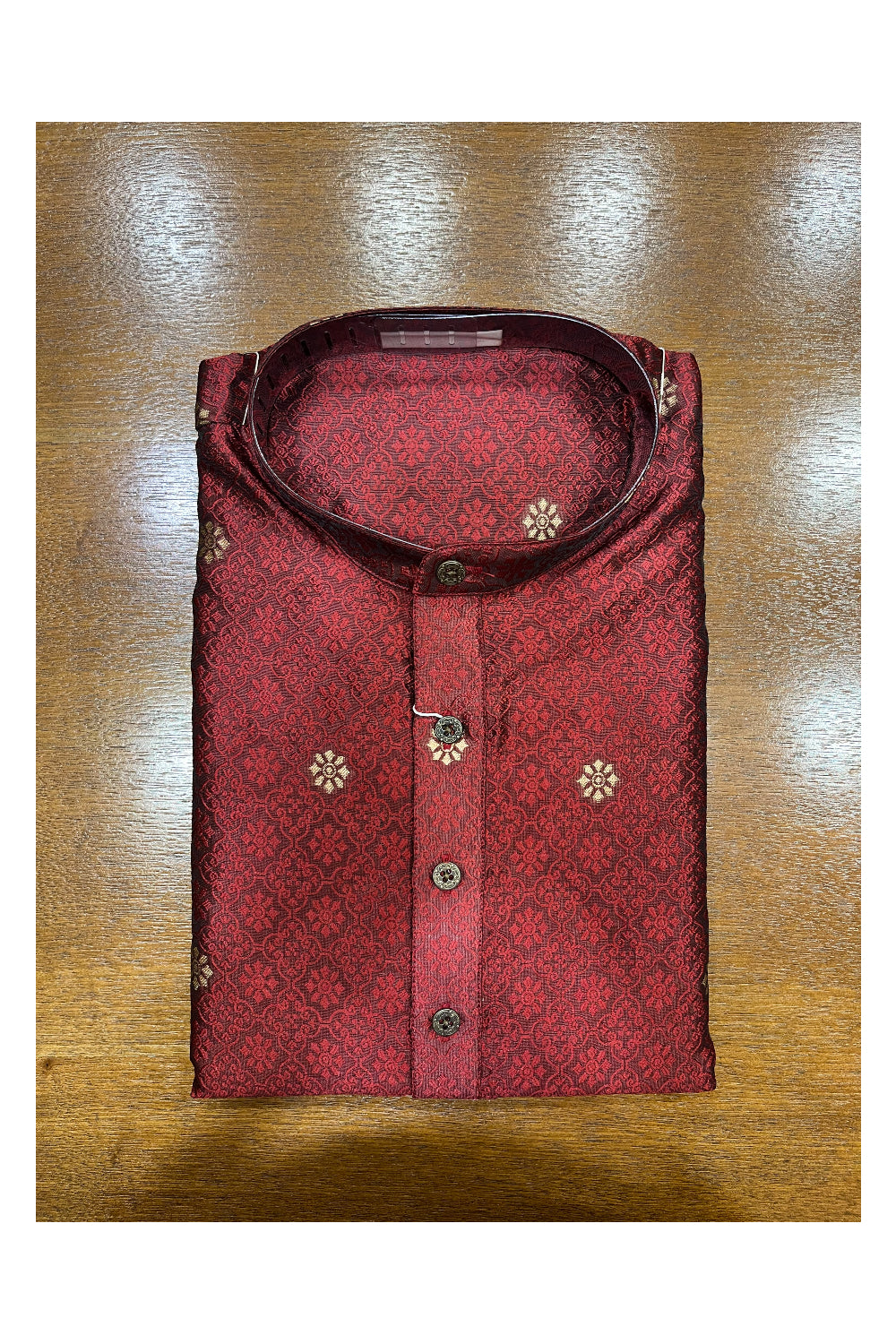 Southloom Red Woven Patterns Semi Silk Short Kurta for Men