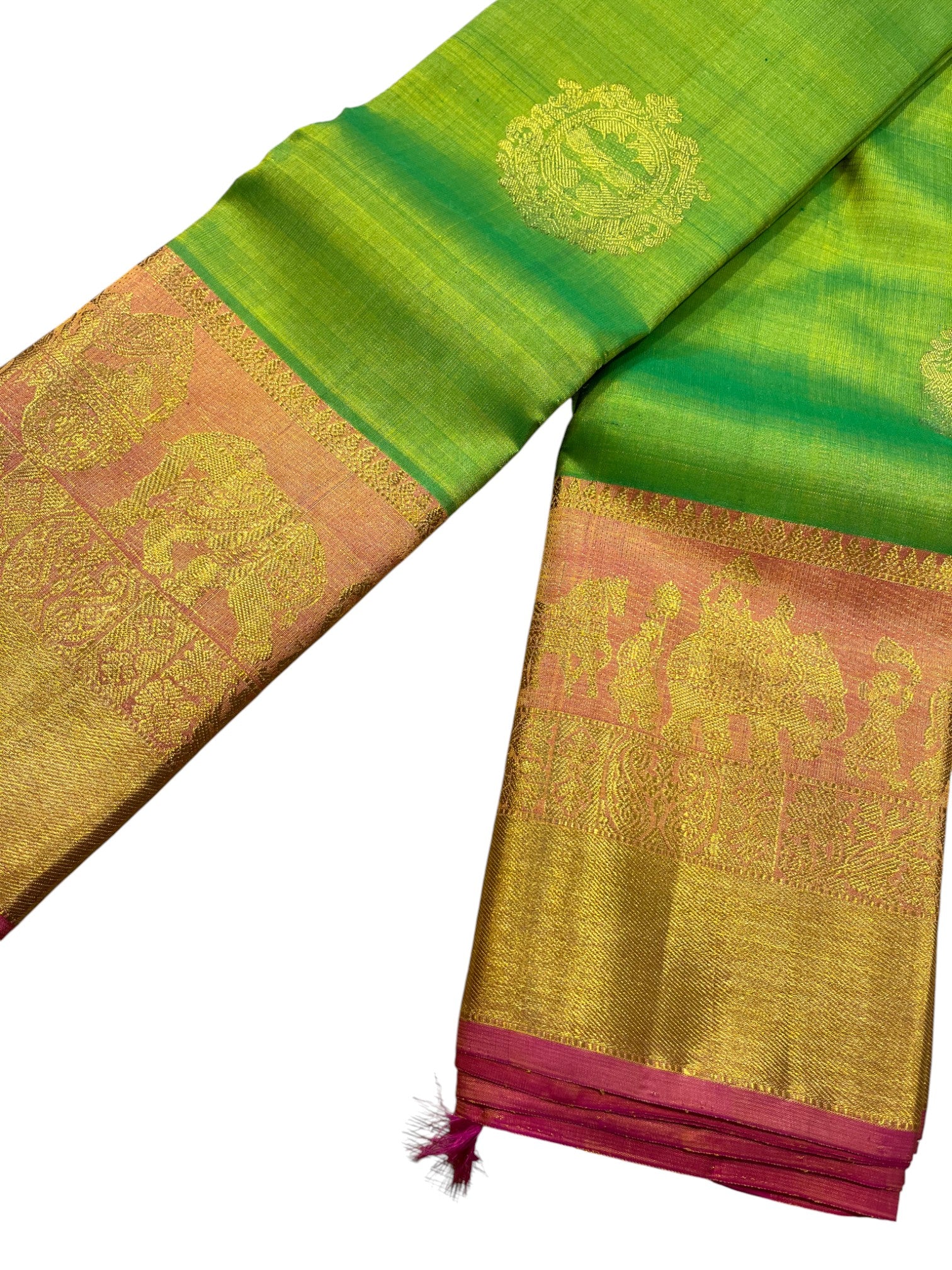 Material: 100% Pure Kanchipuram Silk with a lustrous finish
