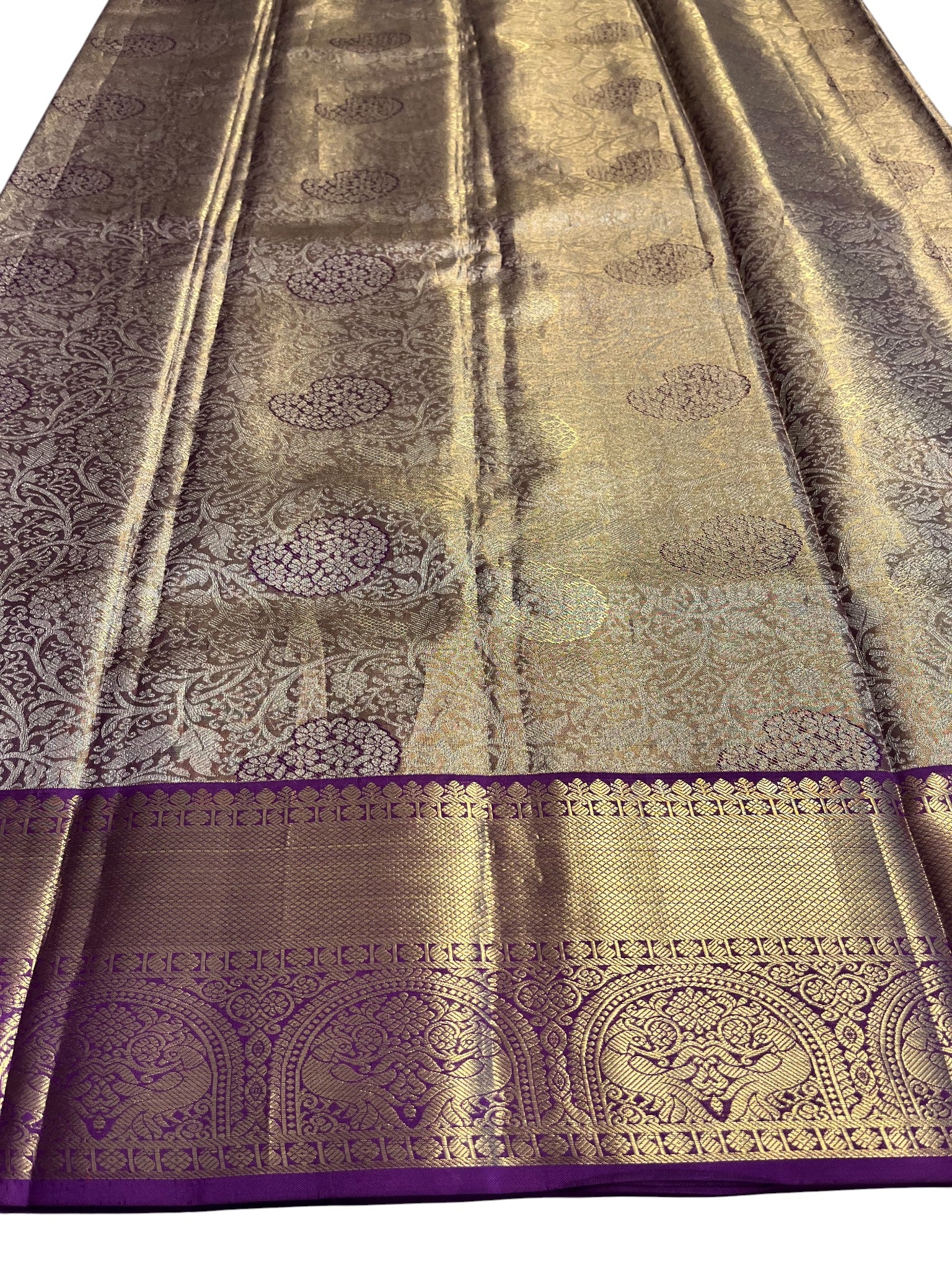 Southloom Premium Handloom Bridal Kanchipuram Silk Saree with Korvai Work (Beige & Violet)