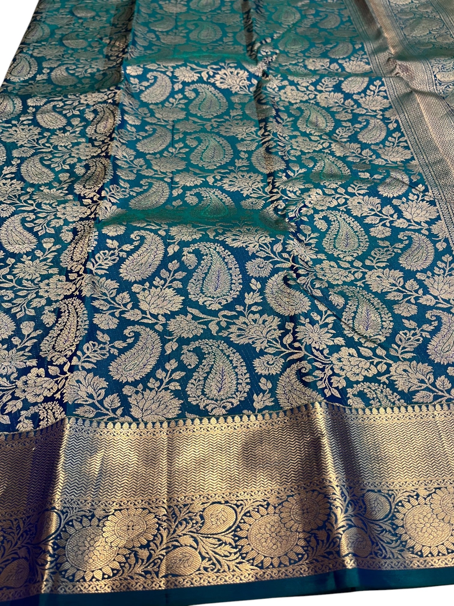 Southloom Premium Handloom Bridal Kanchipuram Silk Saree with Korvai Work (Blue)