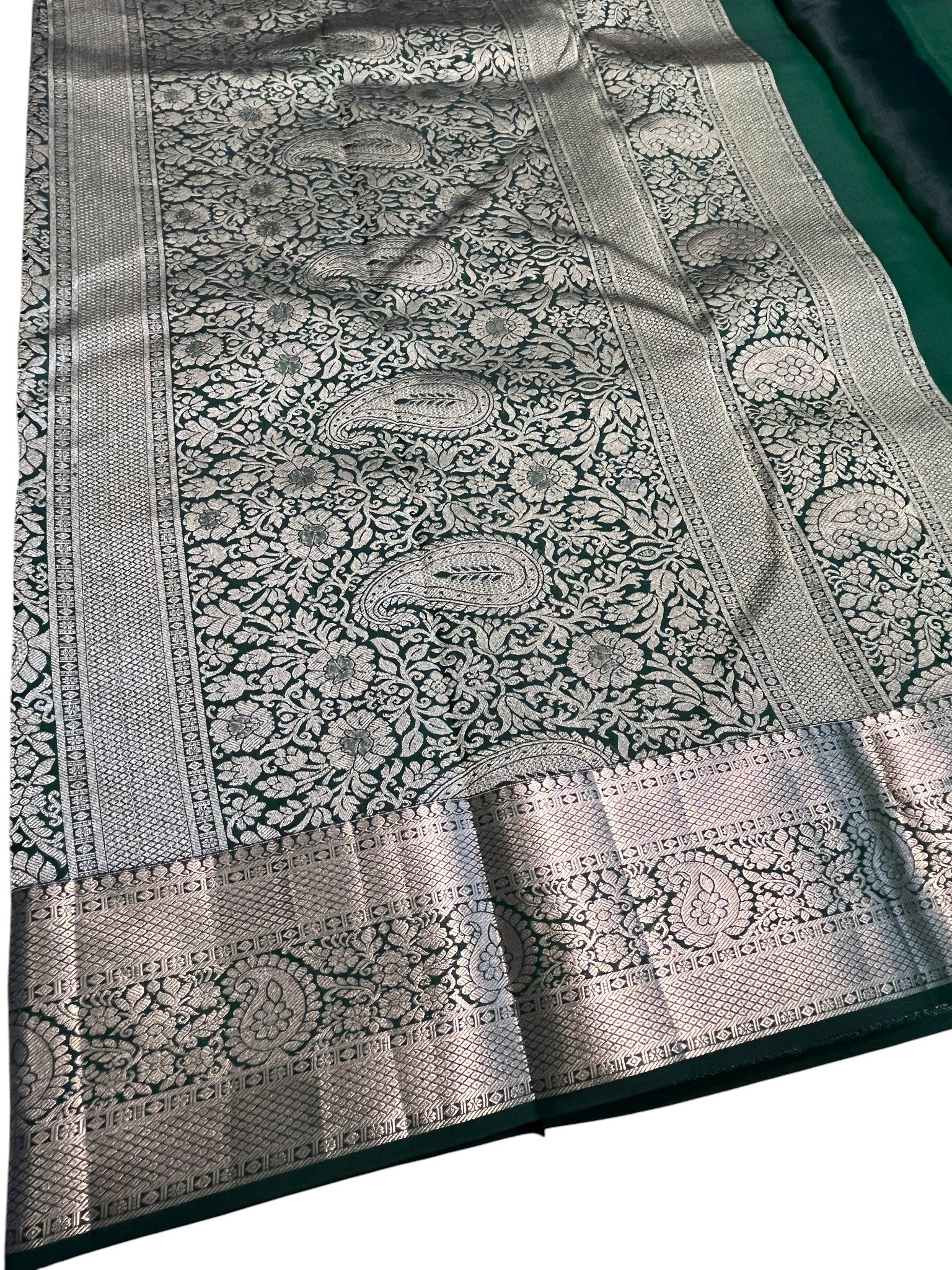 Southloom Premium Handloom Bridal Kanchipuram Silk Saree with Korvai Work (Green)