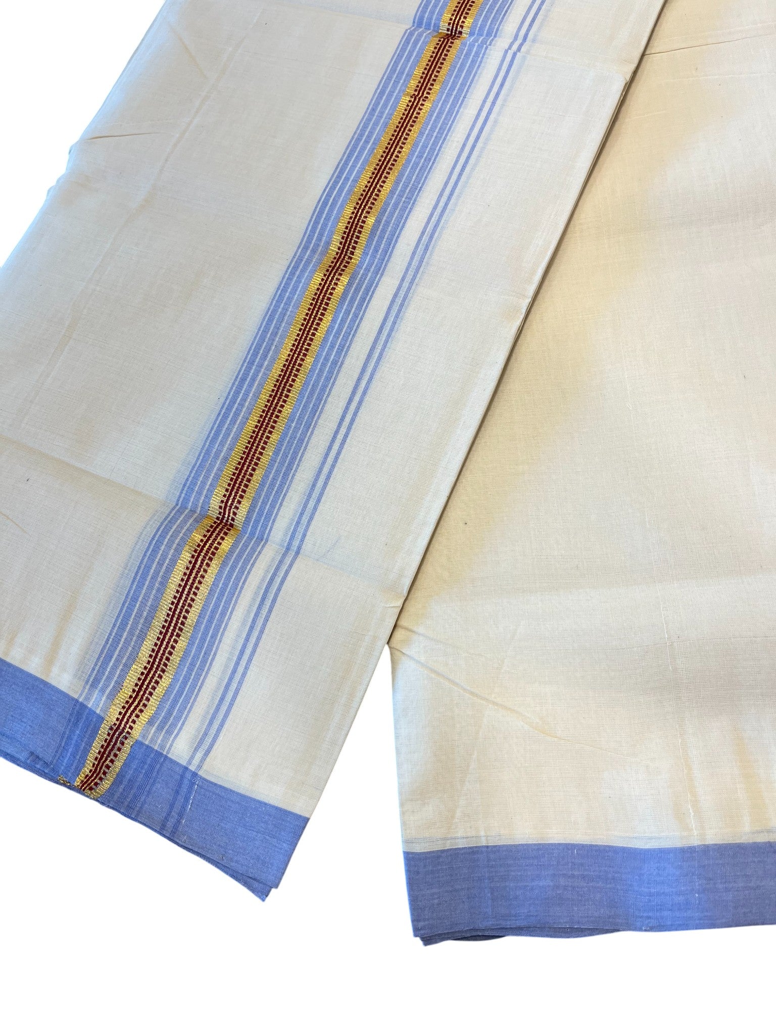 Southloom Premium Handloom Cotton Double Mundu with Gold and Blue Border