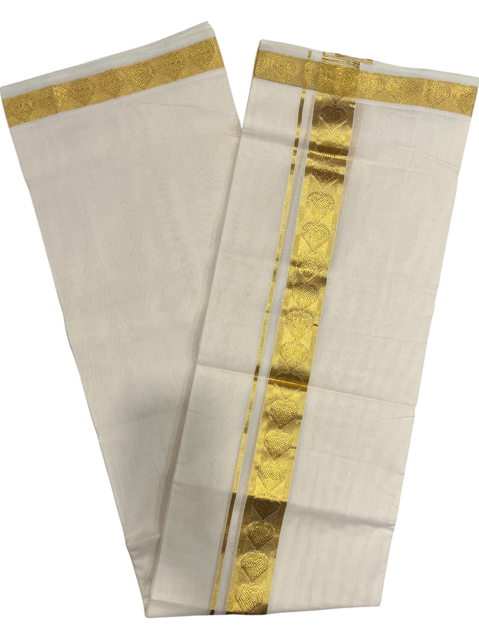 Southloom Premium Handloom Cotton Double Mundu with Gold And Woven Work Kasavu Border