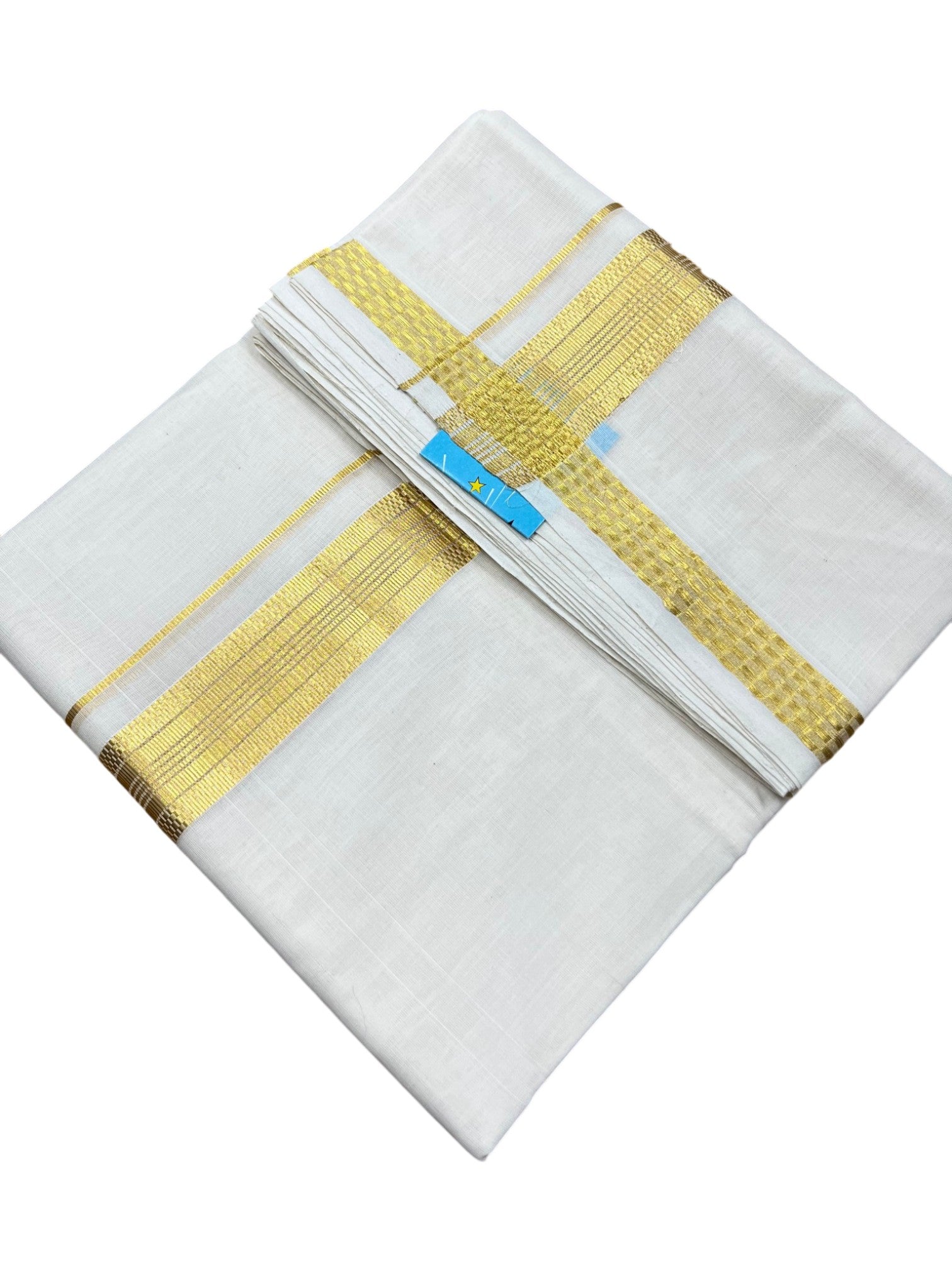 Southloom Premium Handloom Cotton Double Mundu with Gold Kasavu and Paa Neythu Border Border