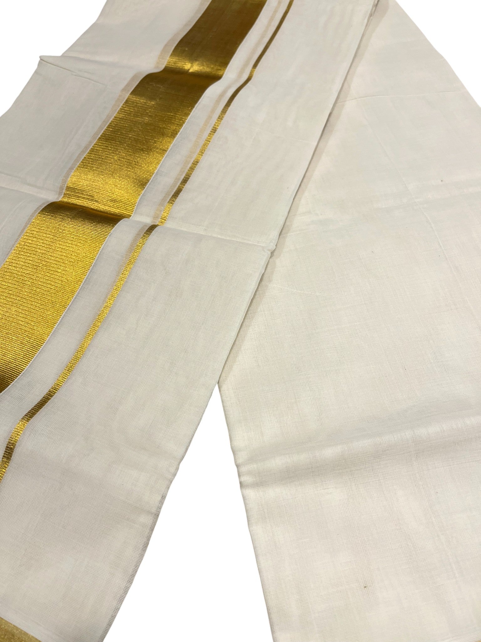 Southloom Premium Handloom Cotton Double Mundu with Gold Kasavu Border