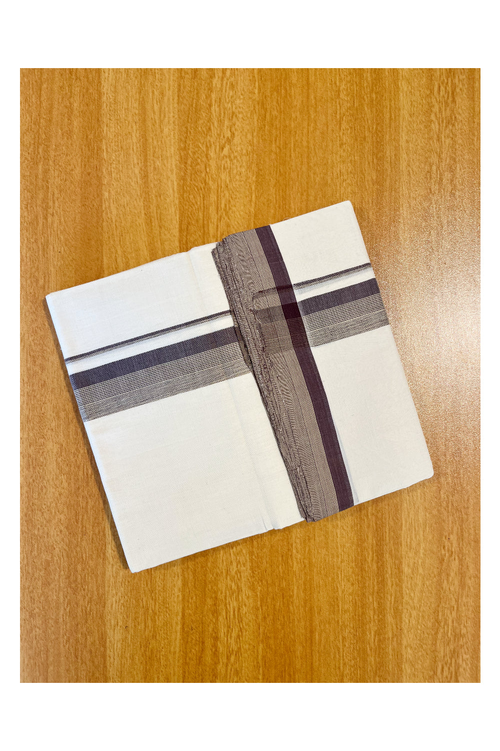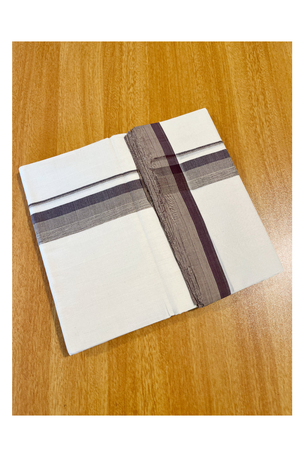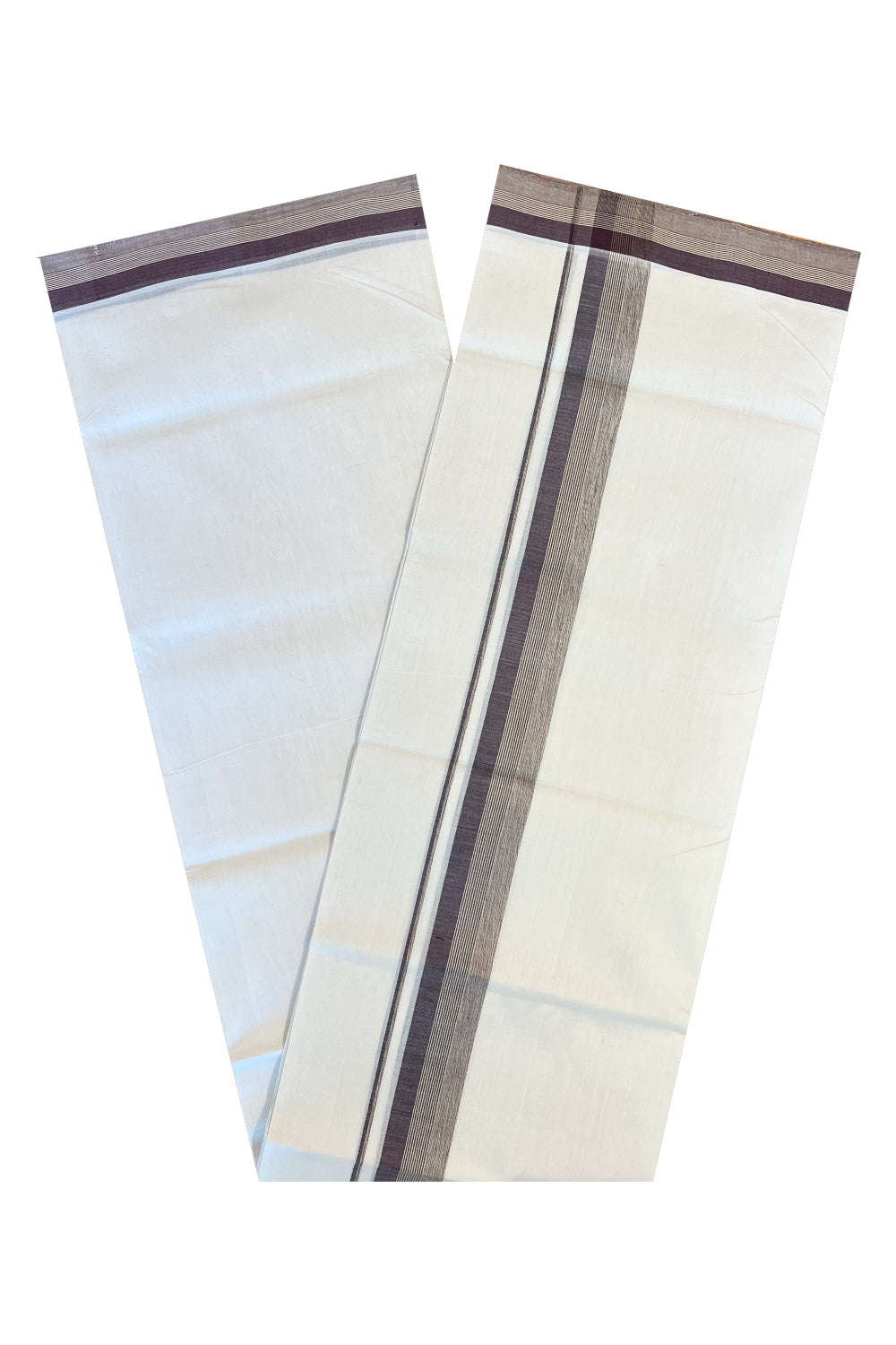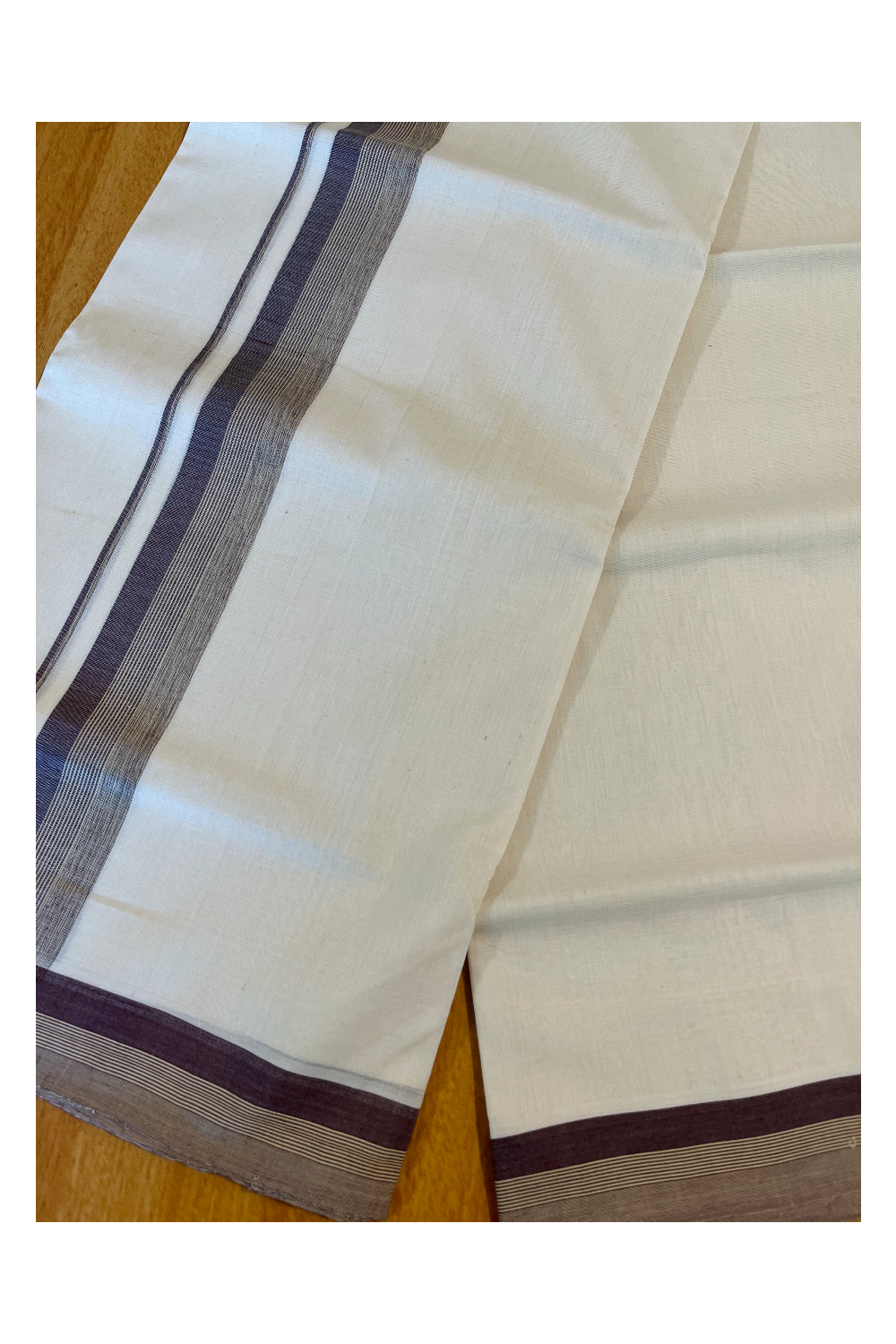 Southloom Premium Handloom Cotton Double Mundu with Purple Lines Border