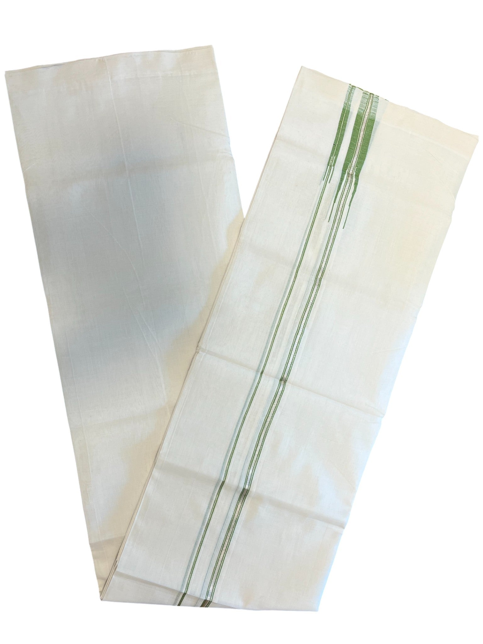 Southloom Premium Handloom Cotton Double Mundu with Silver and Green Chutti Kara Border