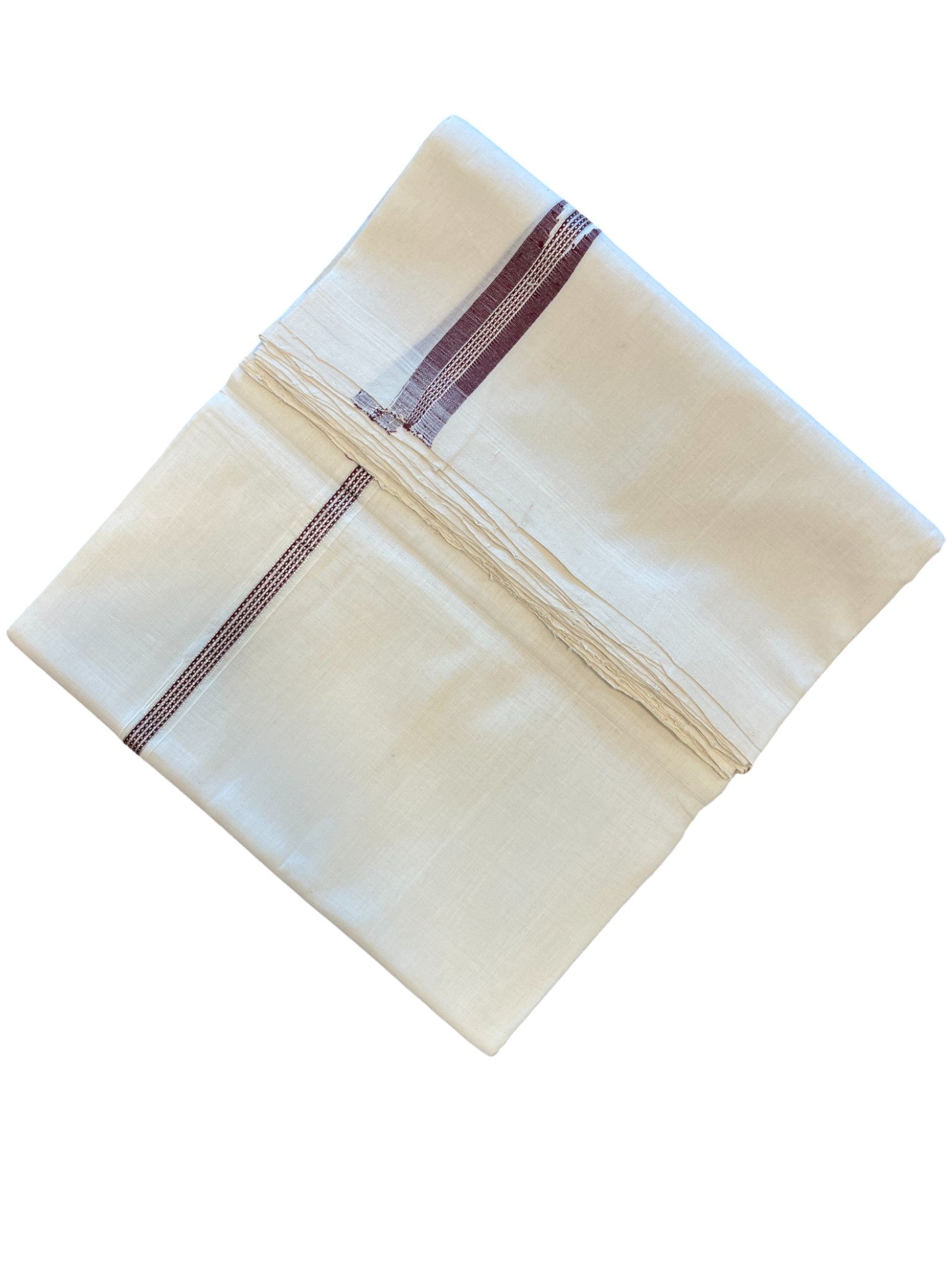Southloom Premium Handloom Cotton Double Mundu with Silver and Maroon Border