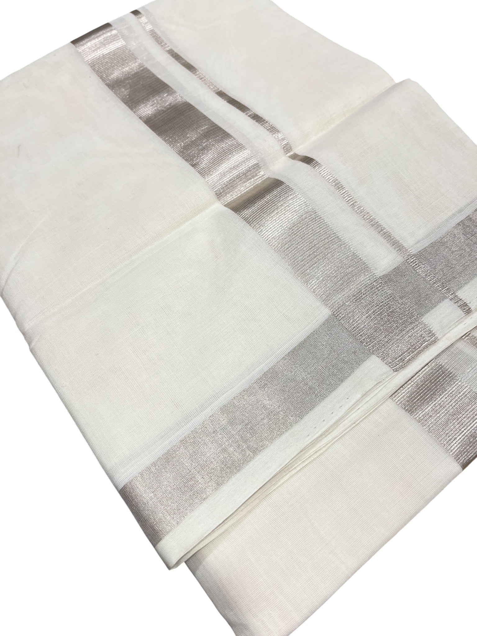 Southloom Premium Handloom Cotton Double Mundu with Silver Kasavu Border