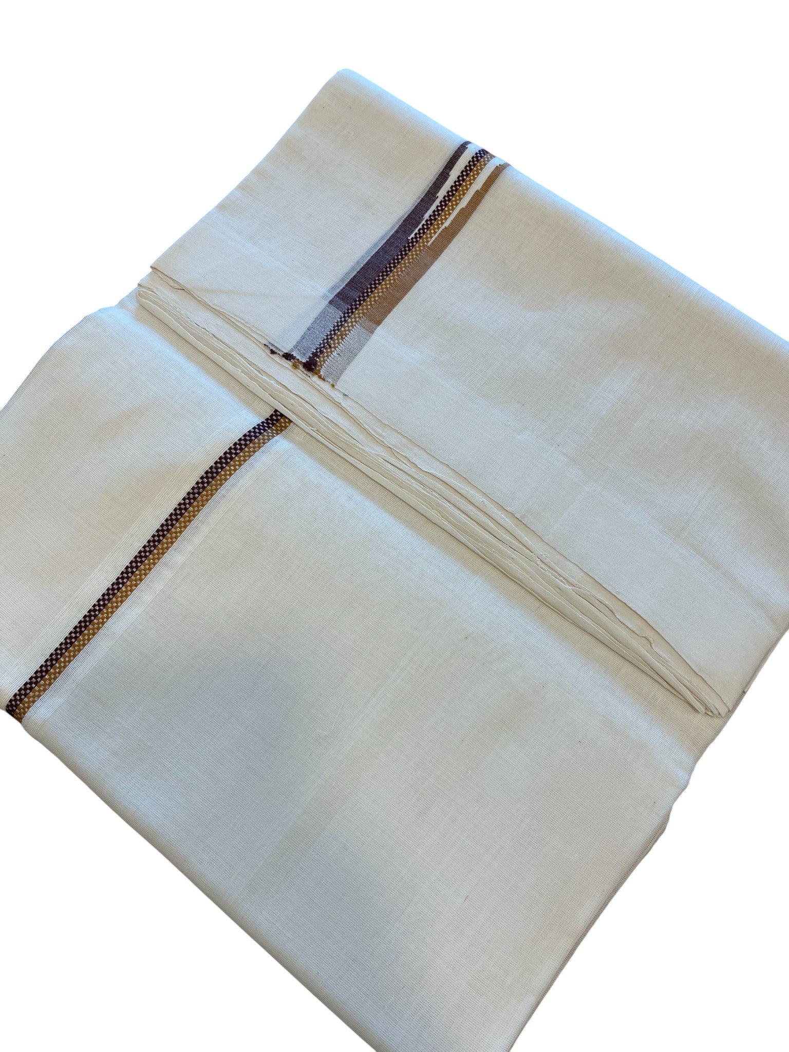 Southloom Premium Handloom Cotton Double Mundu with Yellow and Purple Border