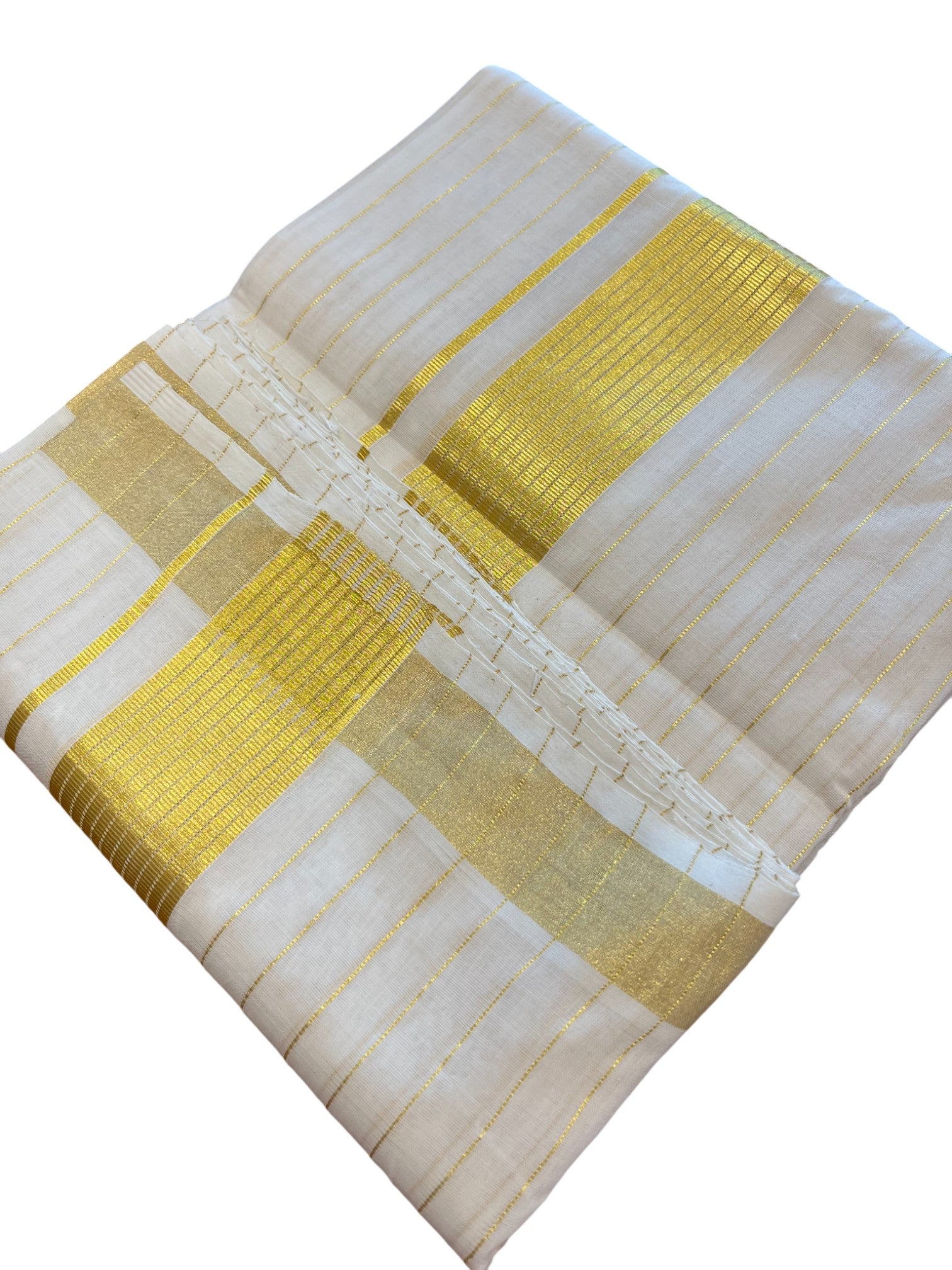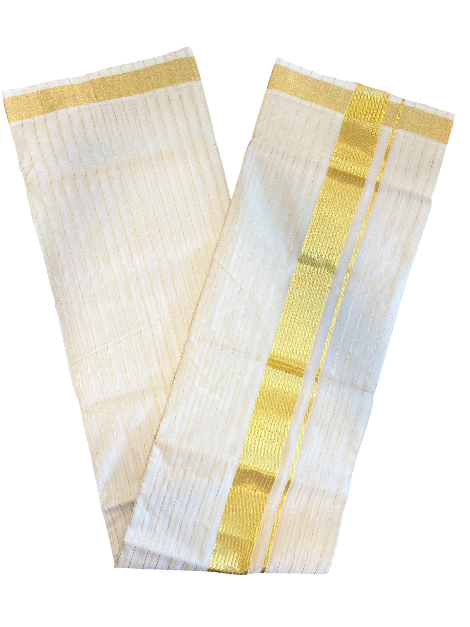 Southloom Premium Handloom Cotton Gold Kasavu Double Mundu with Stripes on Body