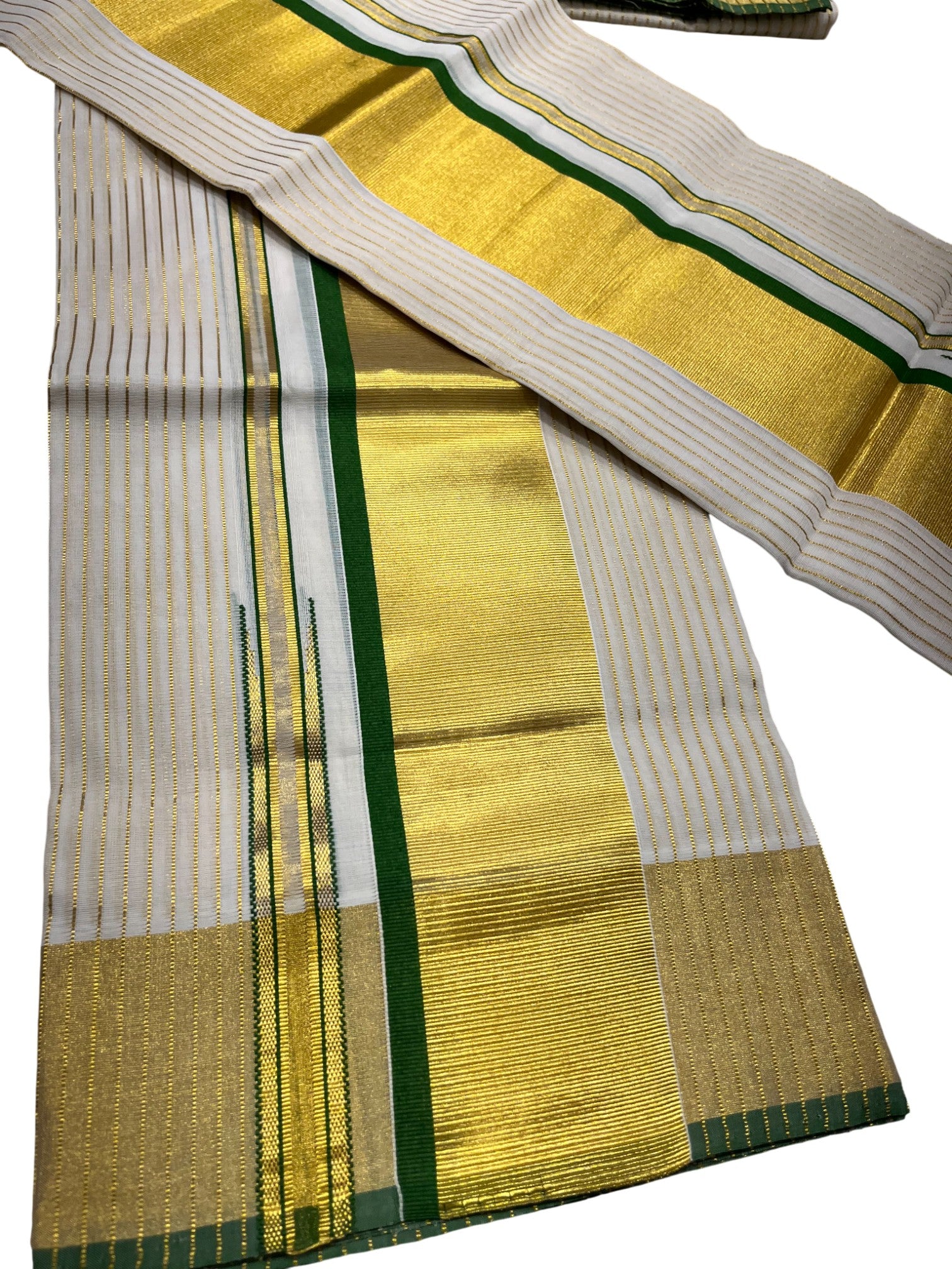 Southloom Premium Handloom Cotton Set Mundu with Kasavu and Green Border (2.80 Mtr)