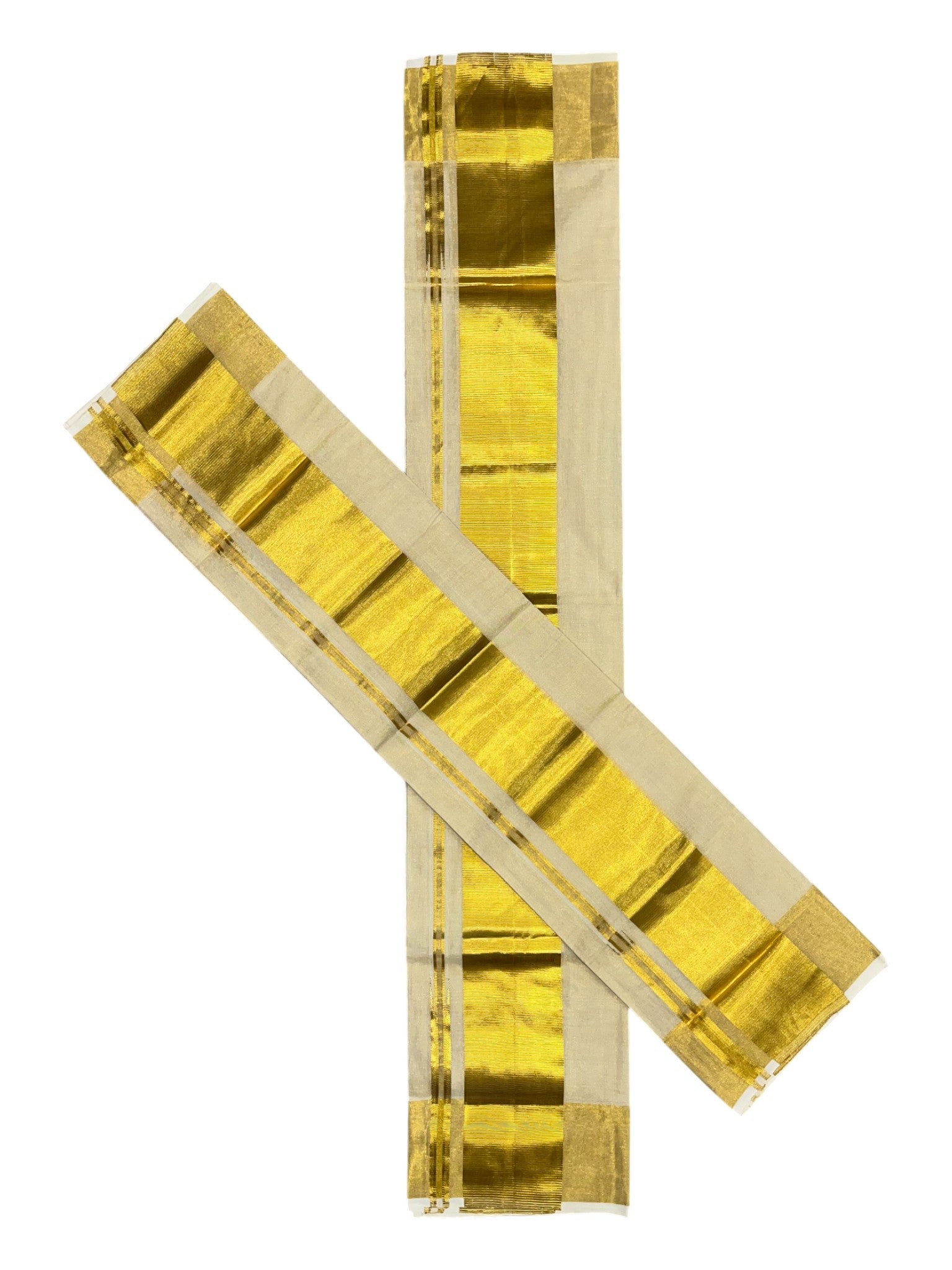 Southloom Premium Handloom Set Mundu with Kasavu and Golden Border (2.80 Mtr)