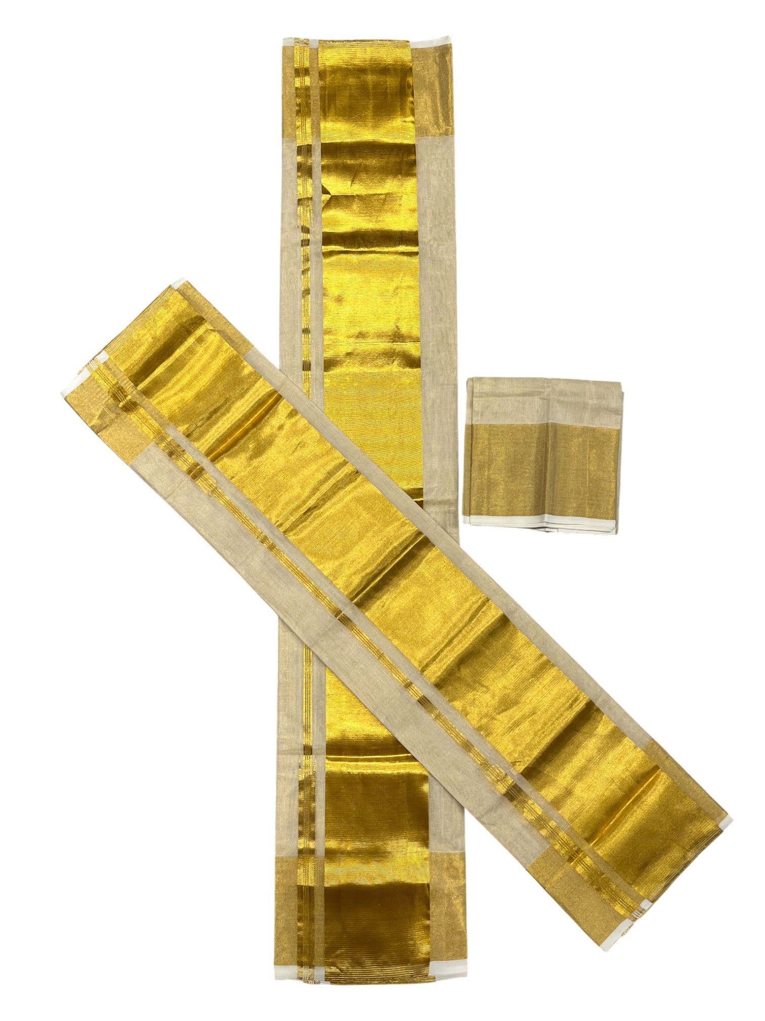 Southloom Premium Handloom Set Mundu with Kasavu and Golden Border(2.80 Mtr)