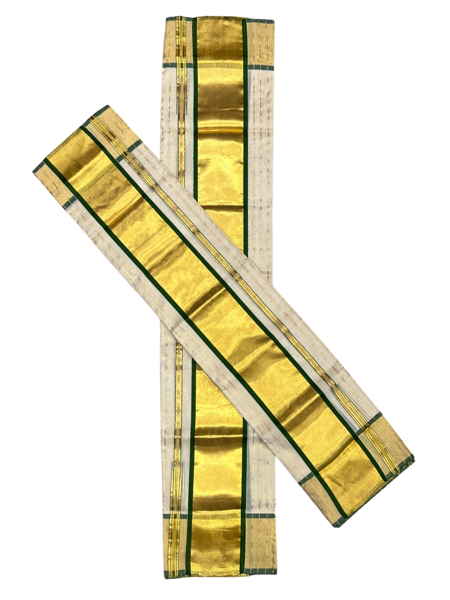 Southloom Premium Handloom Set Mundu with Kasavu and Green Border (2.80 Mtr)