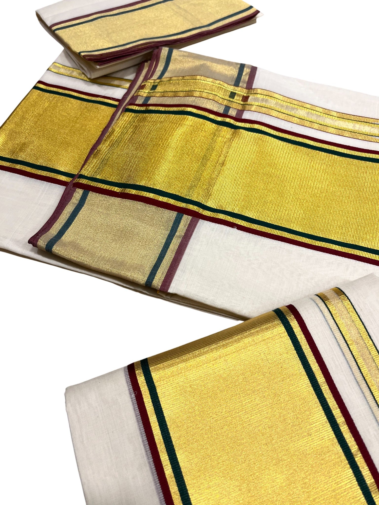 This is an authentic Southloom branded Handloom Set Mund woven by one of our master weavers. The village has been renowned throughout centuries for the fine pieces of traditional attire that it churns out.