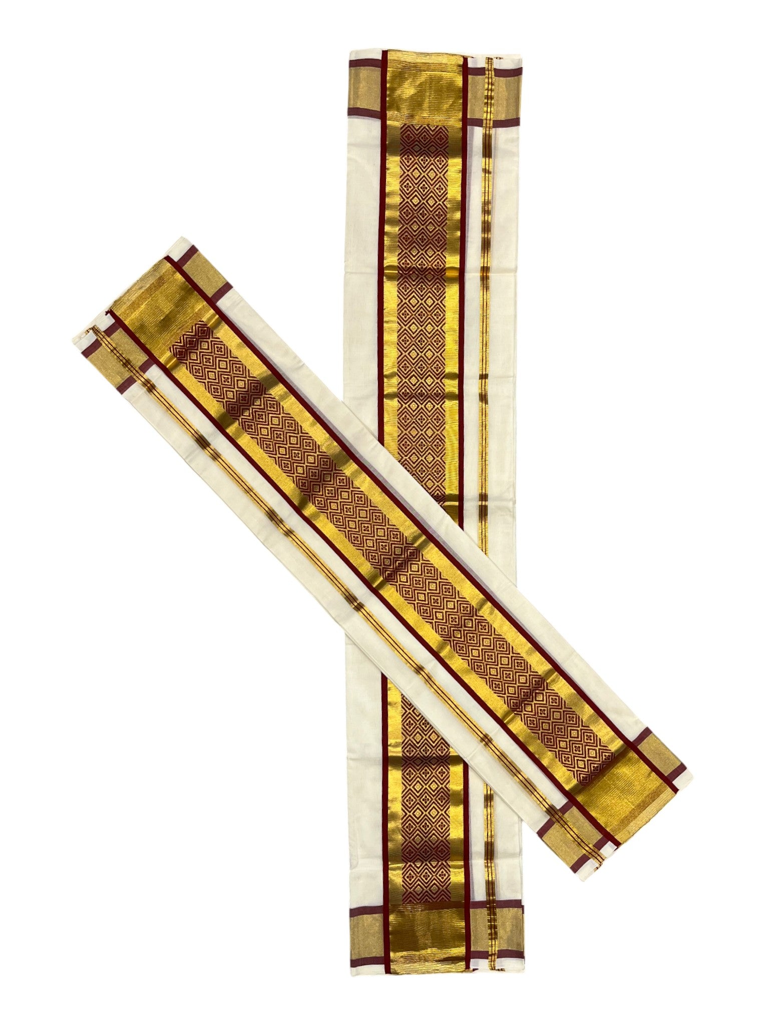Southloom Premium Handloom Set Mundu with Kasavu Maroon and Golden Border (2.80 Mtr)