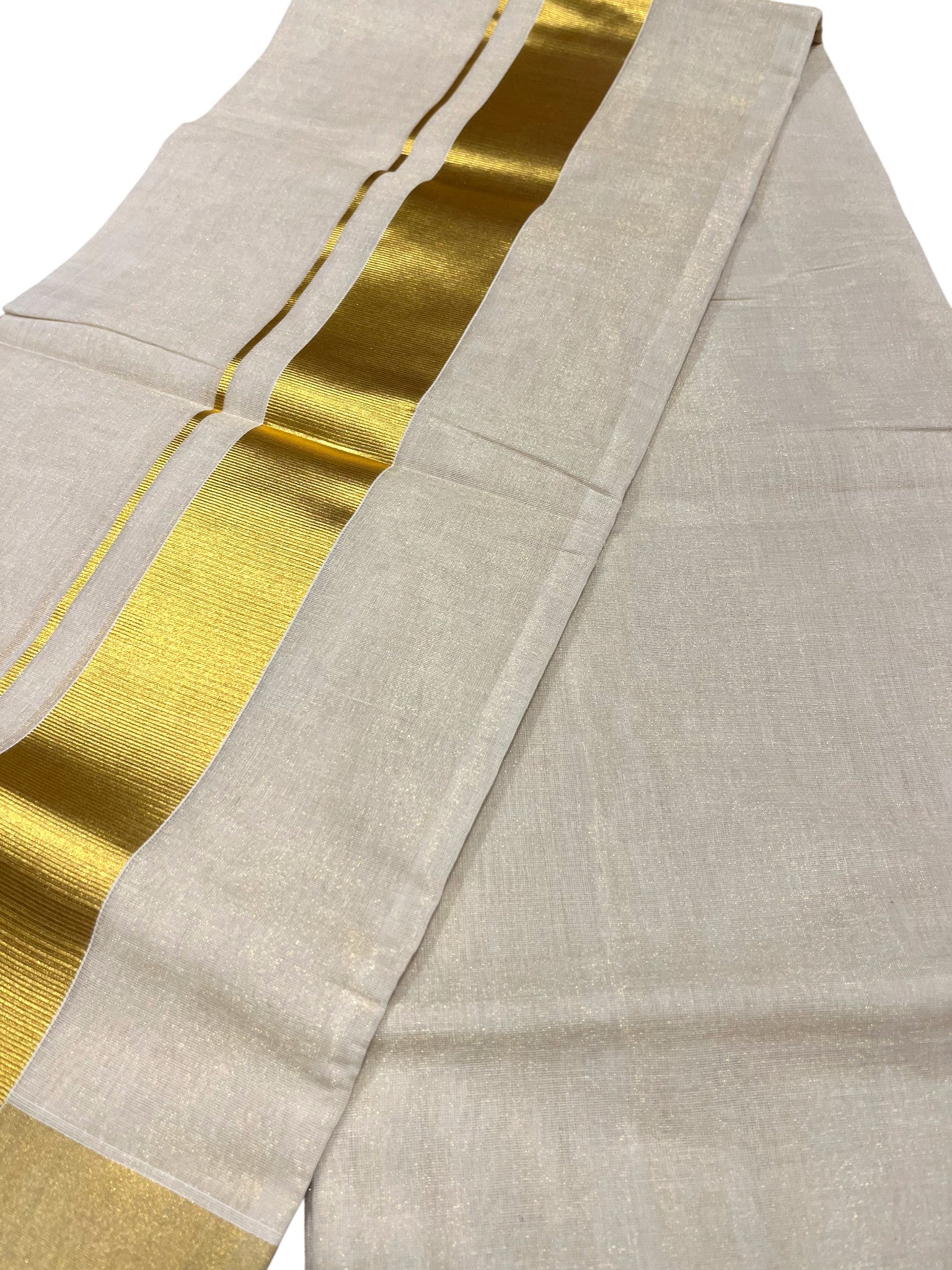 Southloom Premium Handloom Tissue Double Mundu with Gold Kasavu Border