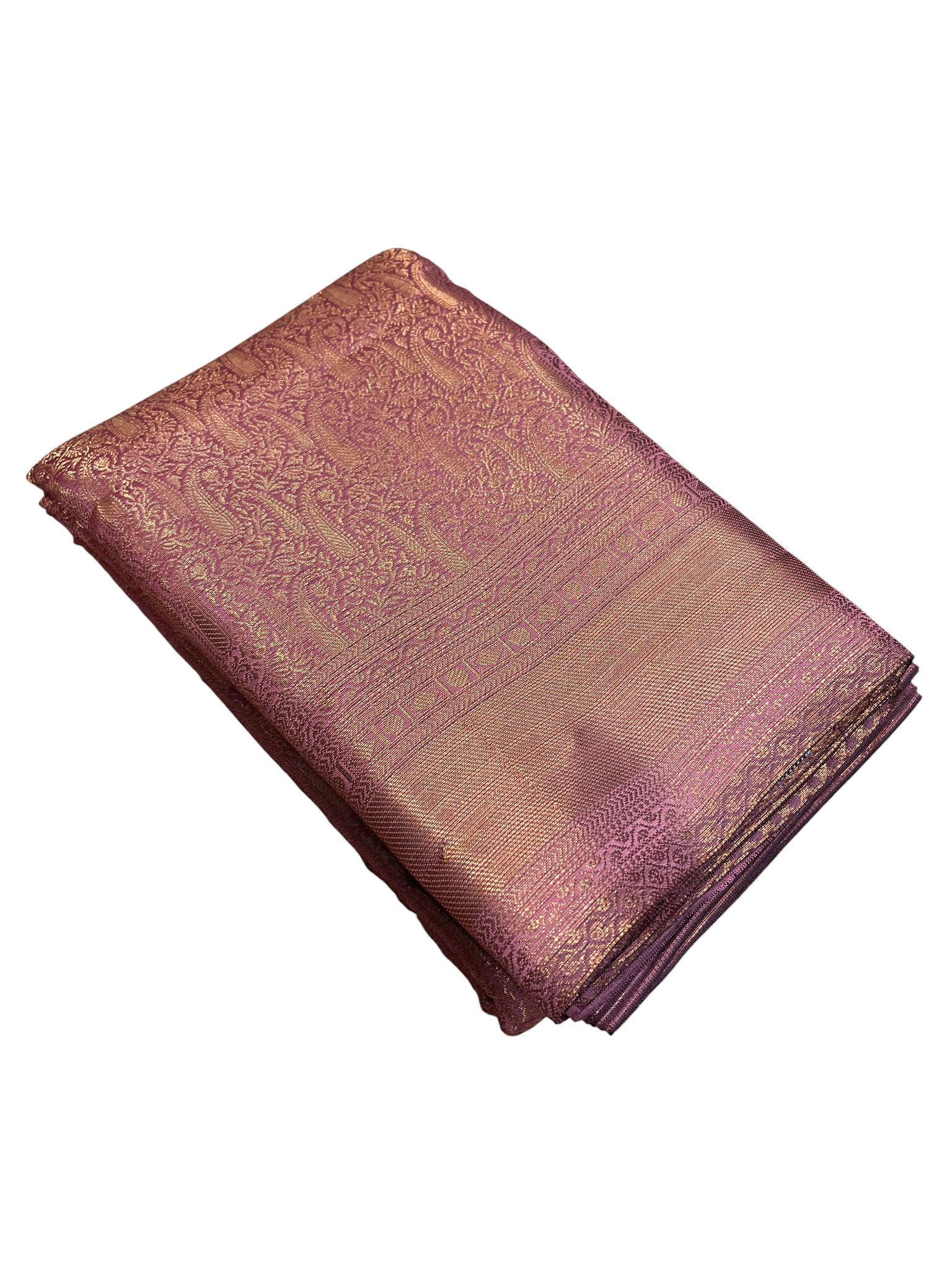 Brown with golden zari blended kanchipuram bridal silk saree crafted with intricate zari work The richly designed brocade blouse with big border adds a touch. Like every kanjivaram saree, this blended kanjivaram silk saree is too designed with heavy silk and the total saree look gives you a perfect traditional appearance for occasions and weddings.