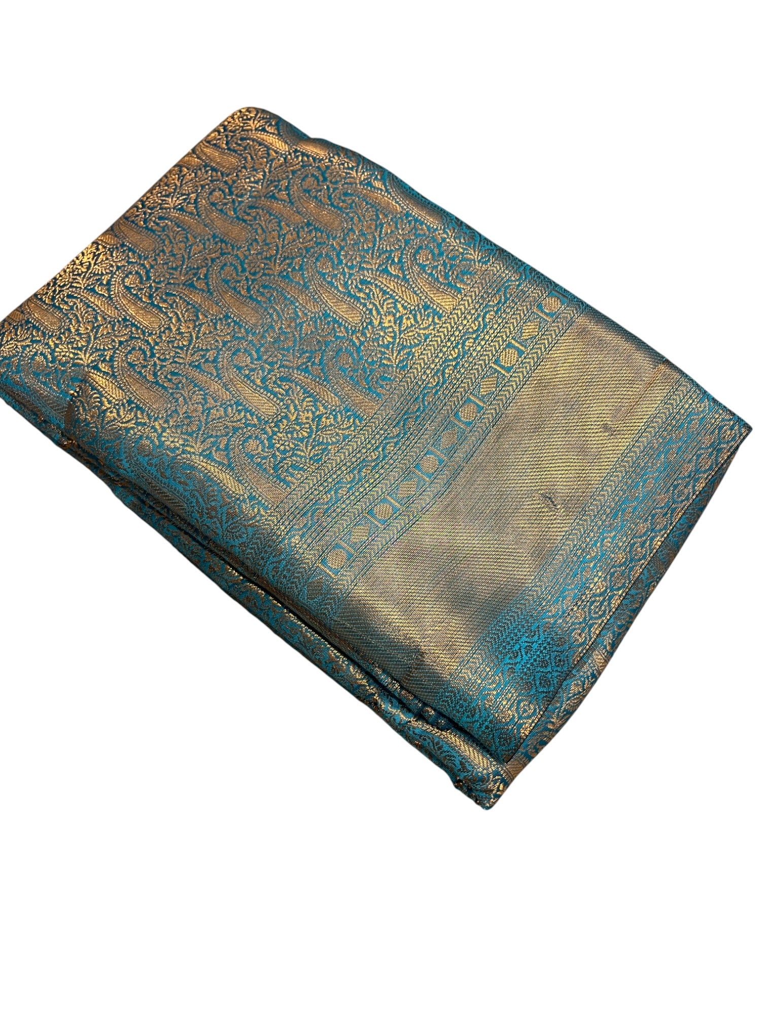 Southloom Premium Semi Silk Zari Work Brocade Saree in Bridal Blue with Matching Pallu