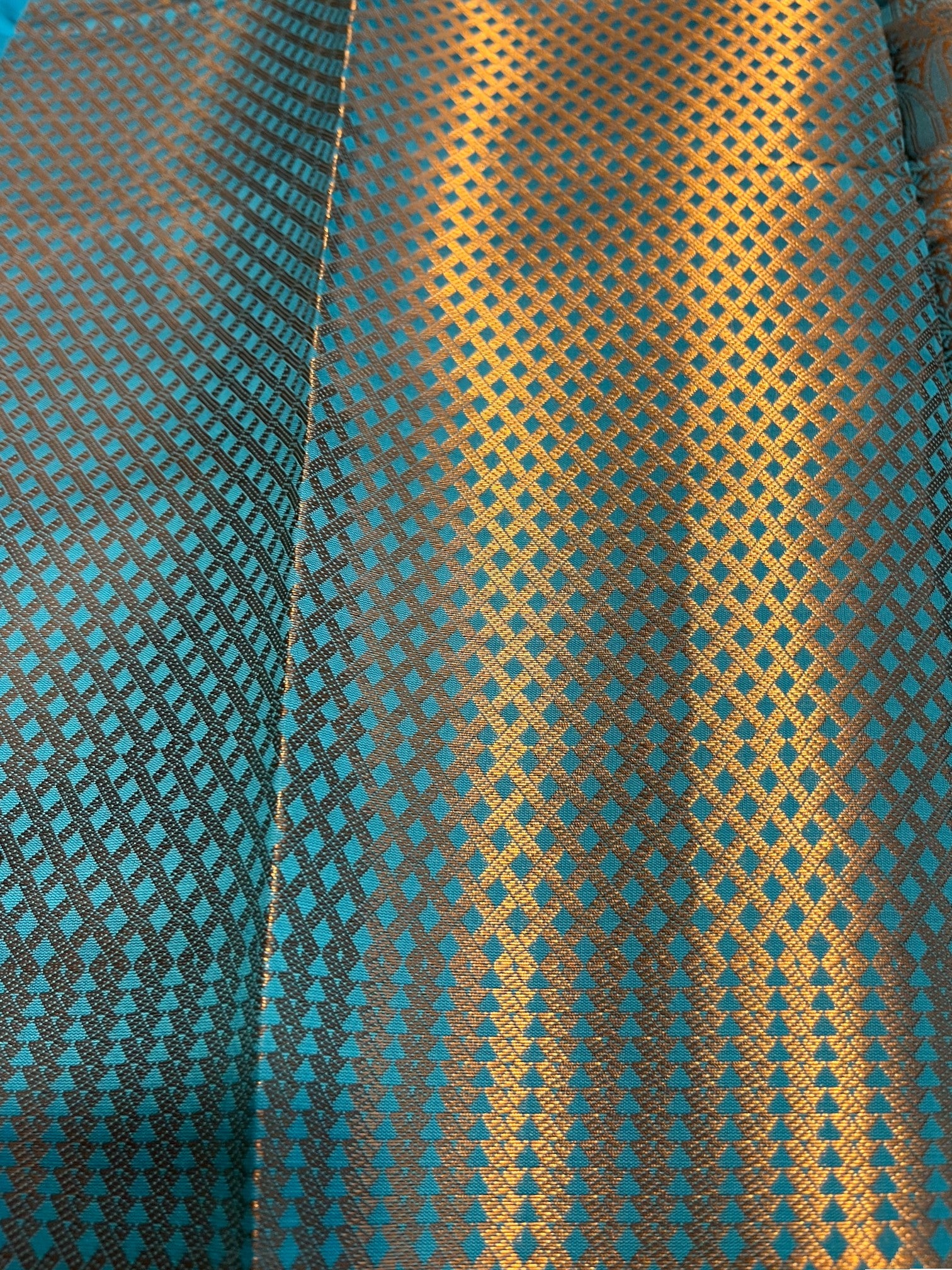 Brown with golden zari blended kanchipuram bridal silk saree crafted with intricate zari work The richly designed brocade blouse with big border adds a touch. Like every kanjivaram saree, this blended kanjivaram silk saree is too designed with heavy silk and the total saree look gives you a perfect traditional appearance for occasions and weddings.