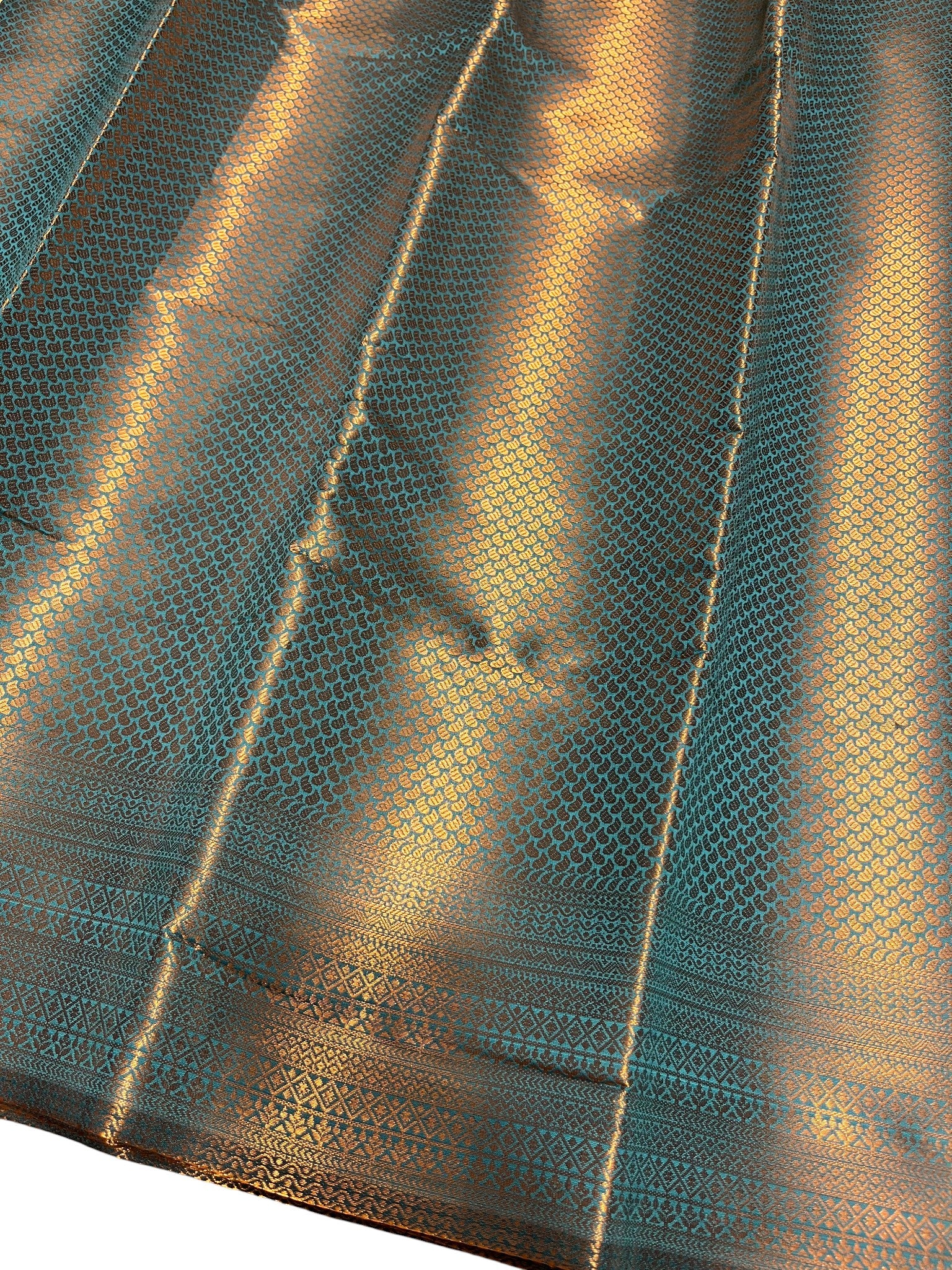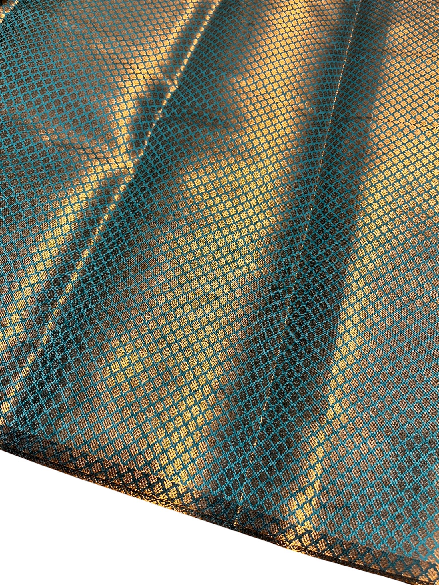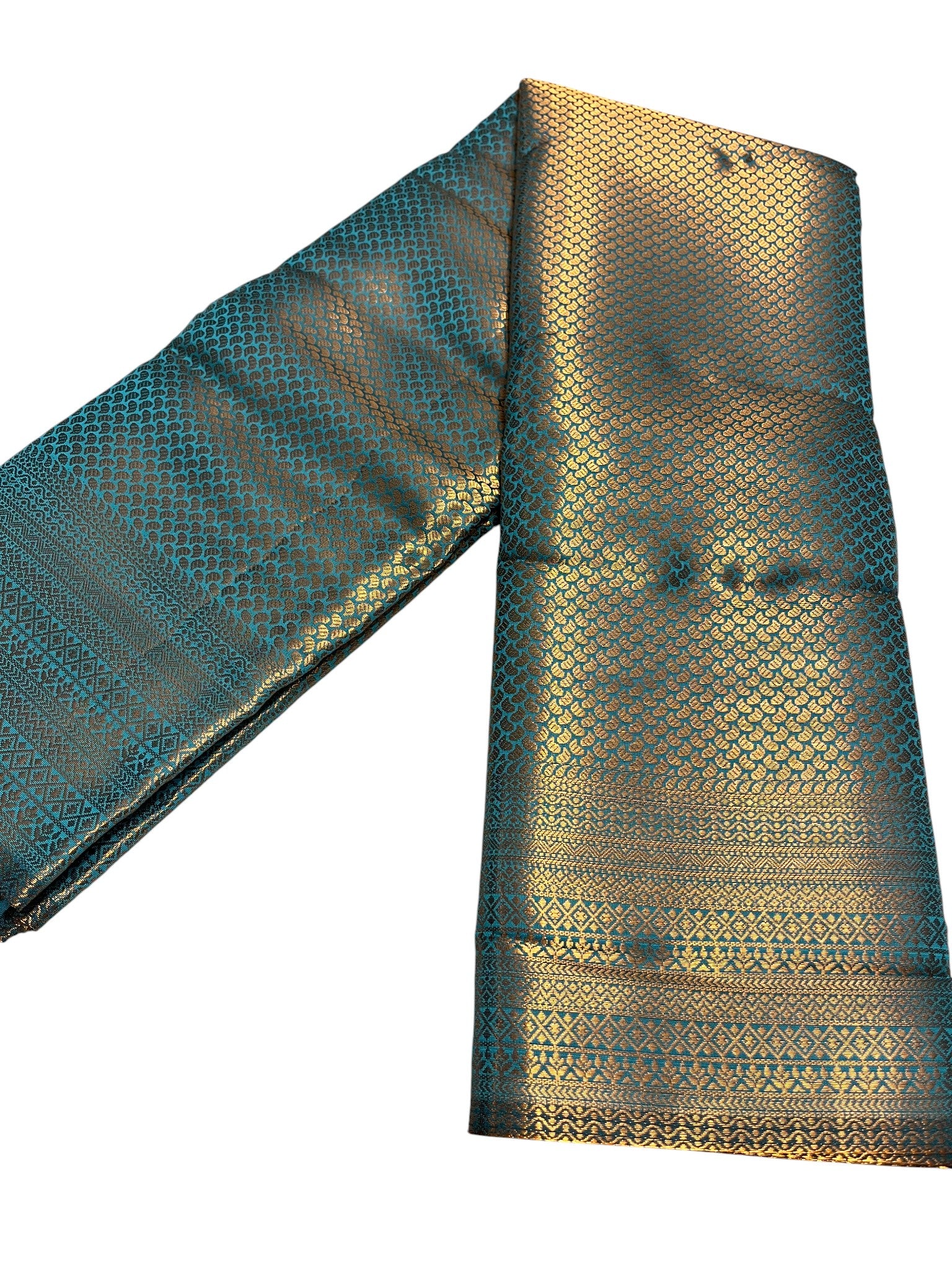 Brown with golden zari blended kanchipuram bridal silk saree crafted with intricate zari work The richly designed brocade blouse with big border adds a touch. Like every kanjivaram saree, this blended kanjivaram silk saree is too designed with heavy silk and the total saree look gives you a perfect traditional appearance for occasions and weddings.